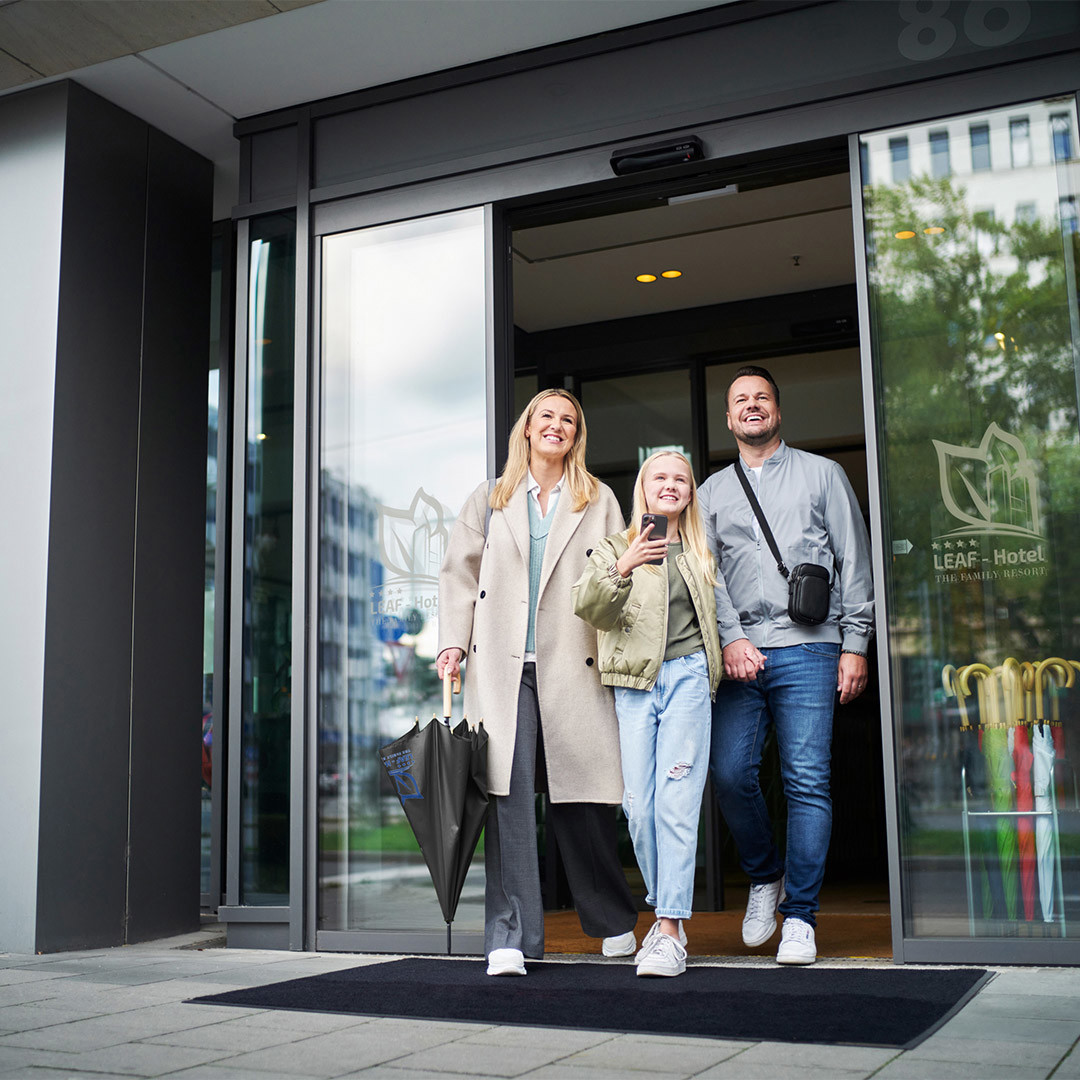 Komfortable Automatik-Funktion zum schnellen Öffnen, Windproof-System für höhere Gestell-Flexibilität und bessere Windsicherheit, flexible Fiberglasschienen, wassersparend gefärbtes Polyester-Pongee waterSAVE® Bezugsmaterial aus recycelten Kunststoffen, mit waterSAVE® Label auf dem Schließband, Echtholzspitzen, Rundhakengriff aus Echtholz, höherer Korrosionsschutz durch schwarze Galvanisierung des Stahlstocks
