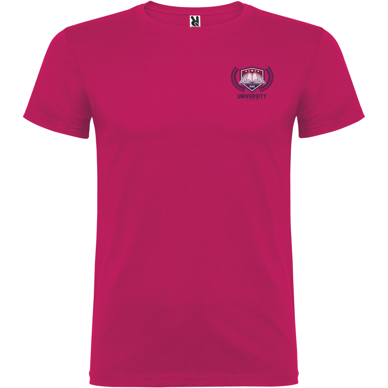 Kurzärmeliges T-Shirt mit doppellagigem Rundhalsausschnitt aus Elasthan, hergestellt aus schlauchförmigem Material für Erwachsene. Verstärkte und verdeckte Nähte am Kragen. Herausnehmbares Etikett. Das Modell ist 190 cm groß und trägt Größe L.