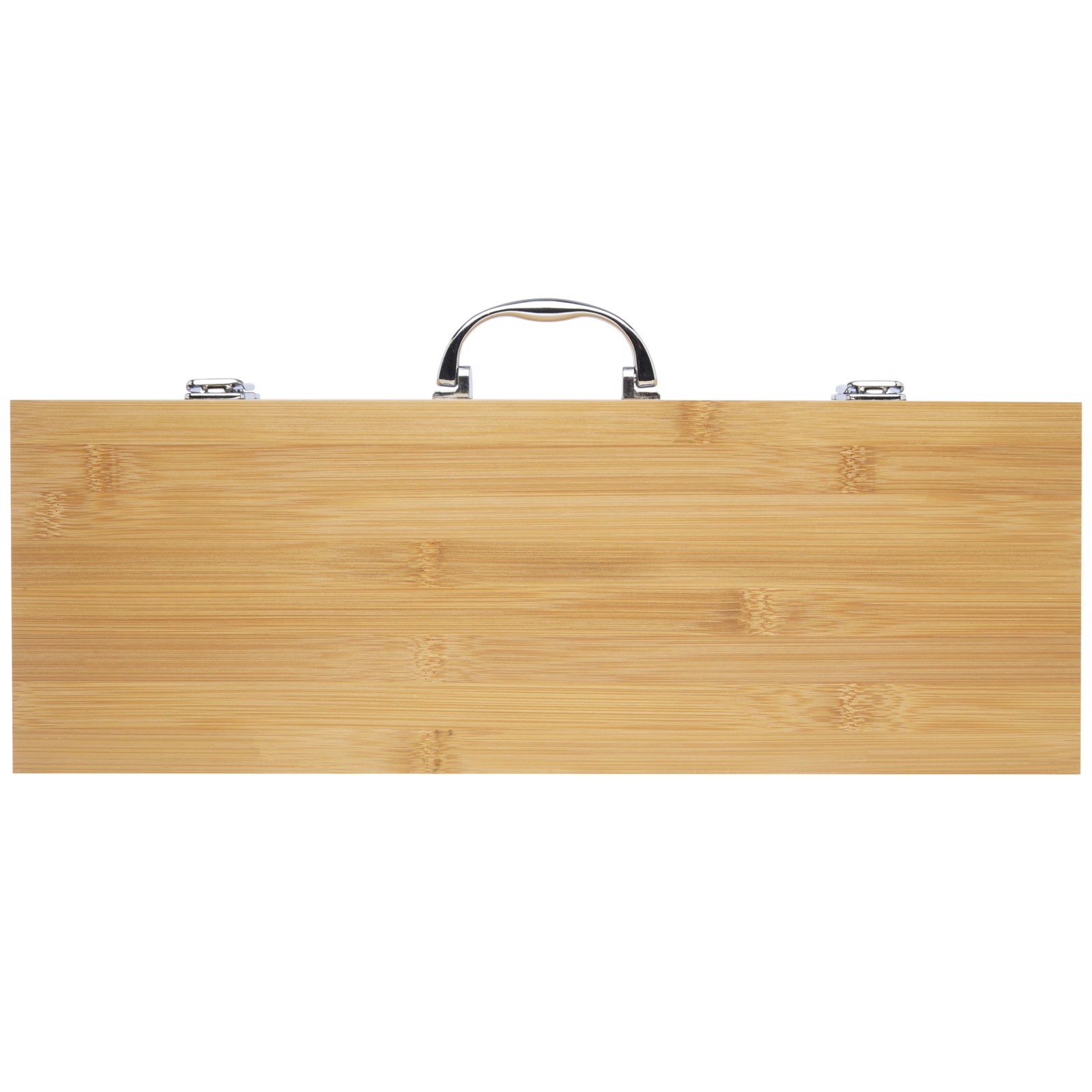 5-teiliges BBQ-Set aus Bambus mit Wender (40 x 9,5 cm), Zange (34,5 x 6 cm), Gabel (38,5 x 3 cm), Messer (38,5 x 3 cm) und Pinsel (38 x 4,3 cm). Das Set wird in einer Geschenkbox aus Bambus (46 x 16,2 x 7,4 cm) geliefert. Die Griffe und die Geschenkbox sind aus Bambus gefertigt, der nach nachhaltigen Normen beschafft und produziert wird.