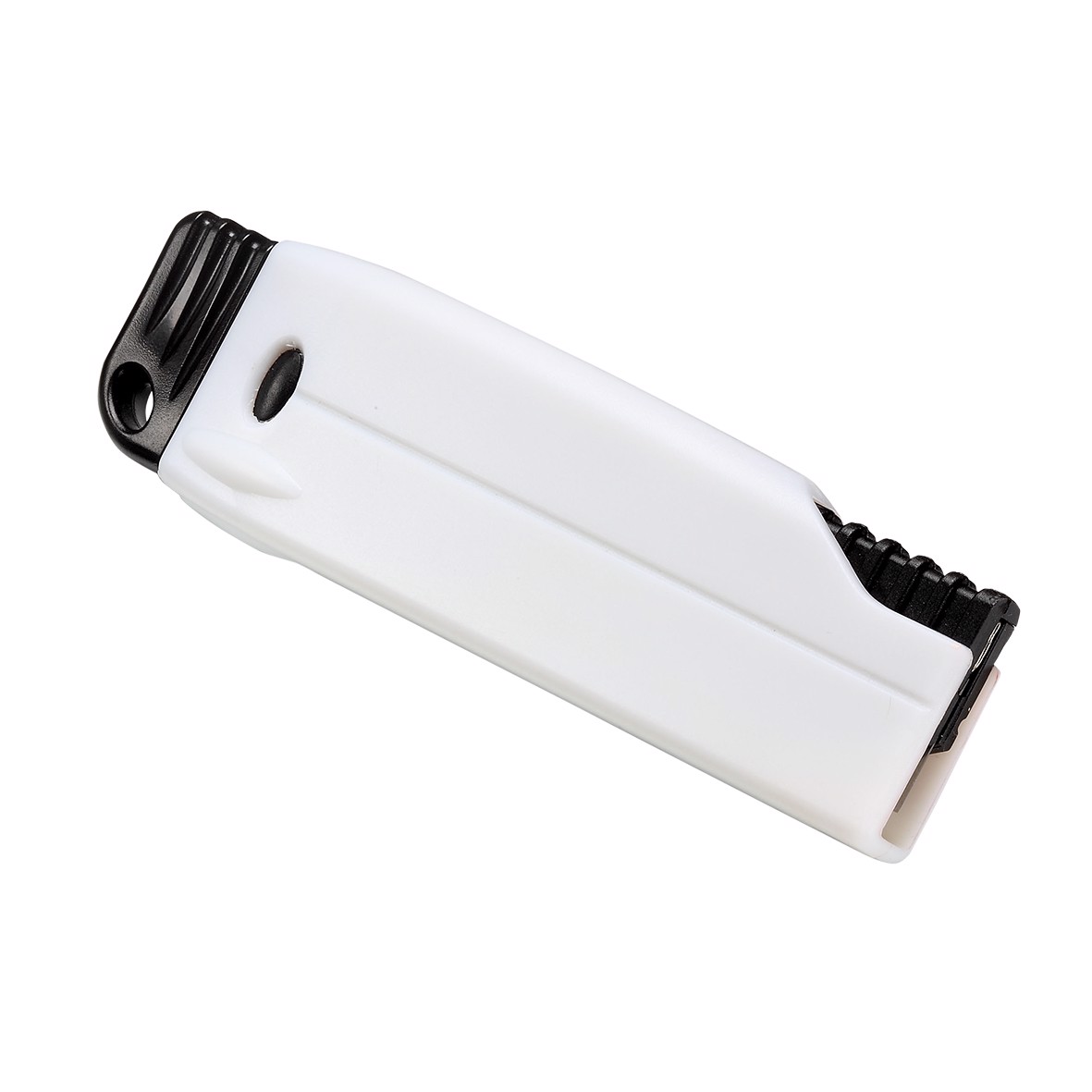Cuttermesser mit Kunststoffgehäuse und scharfer Metallklinge zum Austauschen. Zum Ausfahren der Klinge muss das schwarze Grip-Teil vorgeschoben werden. Die Klinge ist nicht feststellbar und lässt sich nur so weit herausschieben um damit problemlos schneiden zu können. Verletzungen werden somit vermieden.