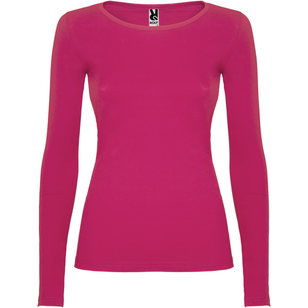Langärmeliges, halb tailliertes T-Shirt mit feinem Halsbündchen. Keine Ärmelbündchen. Seitennähte. Herausnehmbares Etikett.