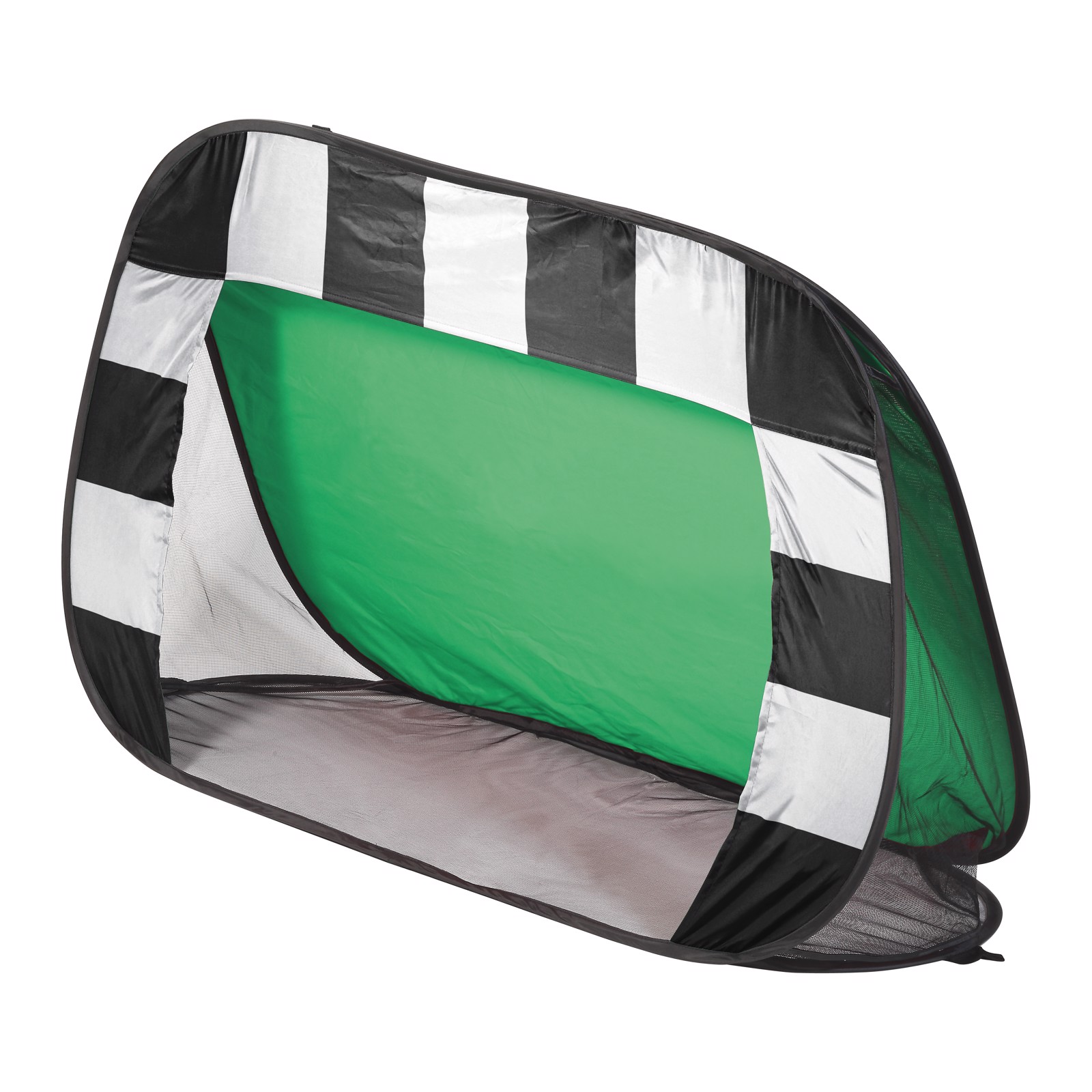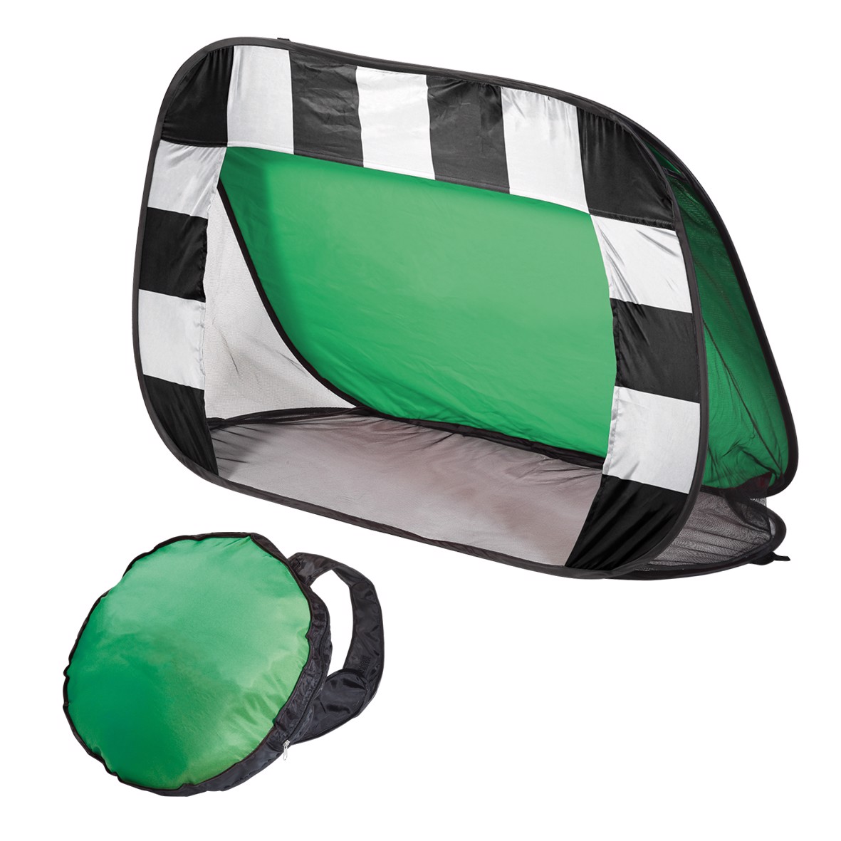 Mit flexiblem Drahtgestell und Netzmaterial. Kann durch Drehen klein zusammengefaltet und in der Reißverschlusstasche verstaut werden. Tasche mit Tragegurt. Tor: 1200 x 750 x 450 mm.