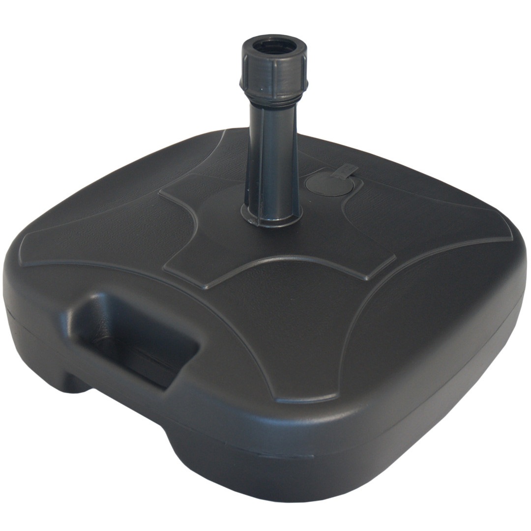 Stabiler Handgriff für einfachen Transport, befüllbar mit ca. 20 Liter Wasser oder 30 kg Sand, maximale Standfestigkeit wird erst bei kompletter Füllung erreicht, dank des Adapters für Stöcke 18-38 mm Ø, inklusive Adapterring für mehr Stabilität bei Stöcken mit geringerem Durchmesser, Made in Germany, Leergewicht: 750 g