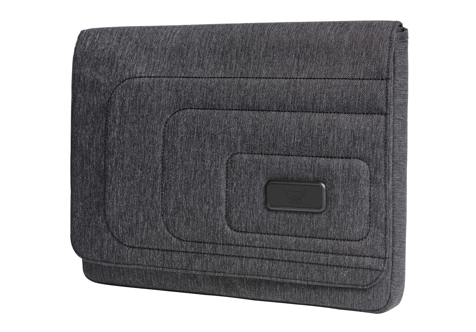 Gepolsterte wertige Hülle mit aufwändig gesteppter Front und HFL® Träger für Ihr Logo; geeignet für Notebook und DIN A4-Notizbücher; auf der Front flaches Einsteckfach mit Stiftschlaufe; rückseitig großes Reißverschluss-Fach geeignet für DIN A4 Unterlagen; Magnetverschluss