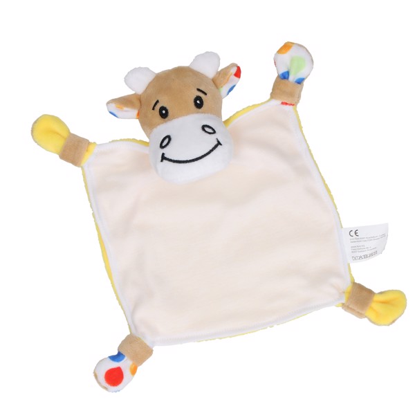 Das niedliche Kuscheltuch zaubert Babys ein Lächeln ins Gesicht - weiches Kuscheltuch aus super softem Velboa-Plüsch in den Versionen "Hase", "Kuh" und "Bär". Die niedlichen Arme und Ohren laden zum Tasten, Fühlen und Knuddeln ein, sodass das kuschelweiche Tuch bald nicht mehr aus der Hand gelassen wird. Es ist CE getestet und kann auf dem "Bauch" großflächig im Rollentransfer veredelt werden.