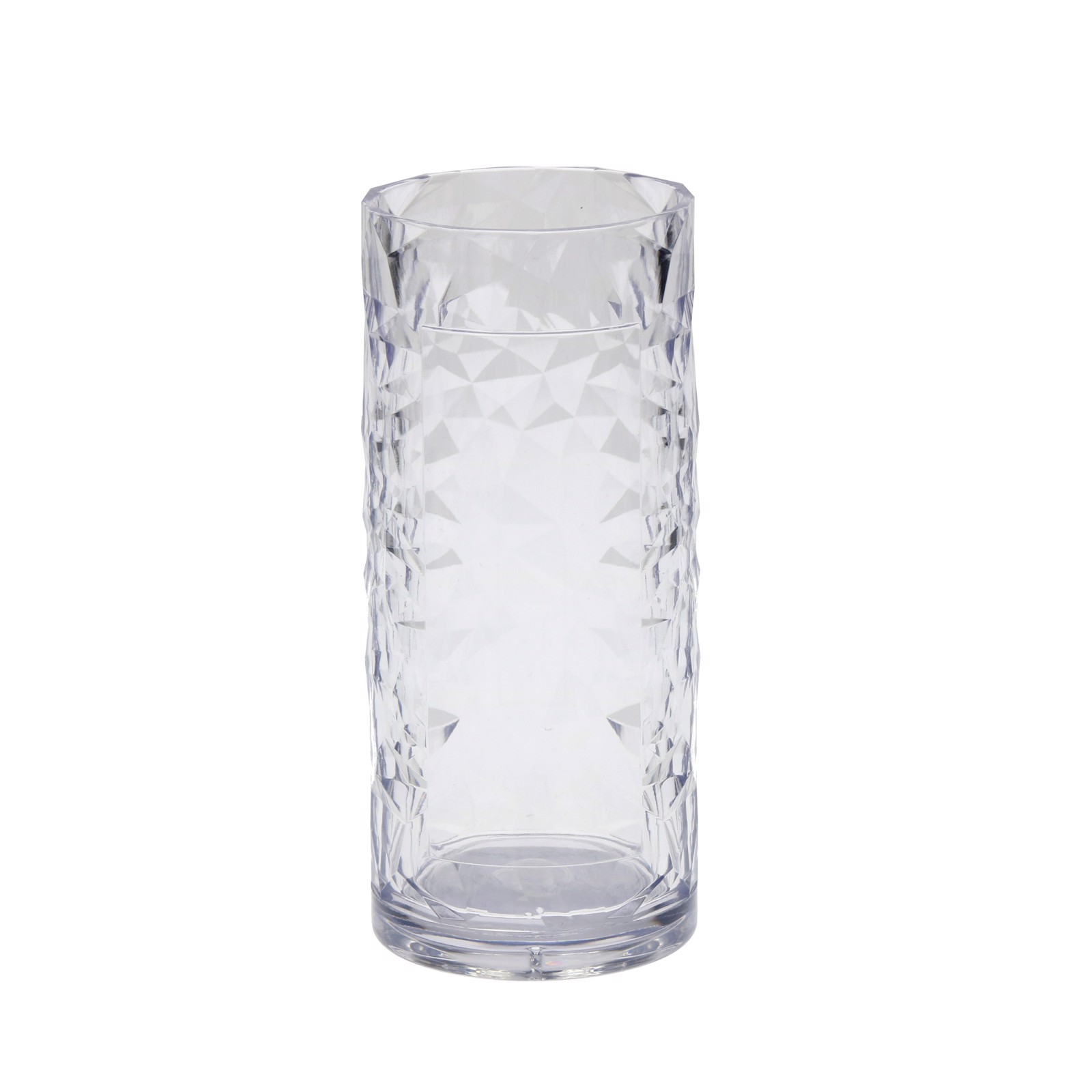 Sieht aus wie Kristallglas - ist aber um einiges bruchfester! Transparenter Longdrinkbecher aus AS mit einem aufwendigen Kristall-Design. Füllmenge: 0,3 Liter.
