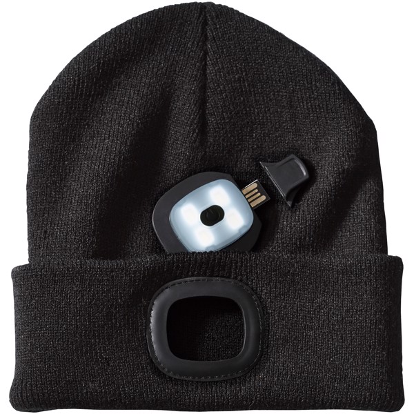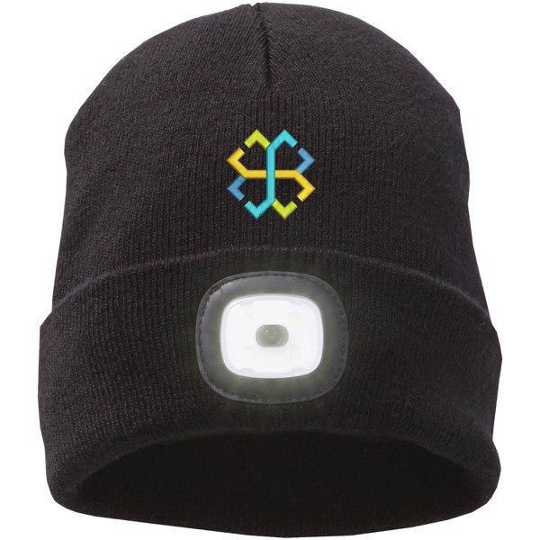 Die Mighty LED Strickmütze - eine perfekte Kombination aus Wärme und Zweckmäßigkeit. Diese doppellagige Mütze aus dickem Acryl in einem 1x1 Rippstrick bietet sowohl Gemütlichkeit als auch Wärme. Das Besondere an dieser Mütze ist die innovative, abnehmbare LED-Stirnlampe, die drei Helligkeitsstufen bietet. Sie ist bequem im Umschlagbündchen verstaut und kann zum Waschen einfach abgenommen und mit einem USB-A Kabel (nicht im Lieferumfang enthalten) aufgeladen werden. Ob Sie der Kälte trotzen oder zusätzliche Sichtbarkeit in der Dunkelheit benötigen, diese Mütze ist Ihr zuverlässiger Begleiter für alle Abenteuer. Werten Sie Ihre Wintergarderobe mit der Mighty LED Strickmütze auf, bei der sich Mode und Funktion nahtlos ergänzen.