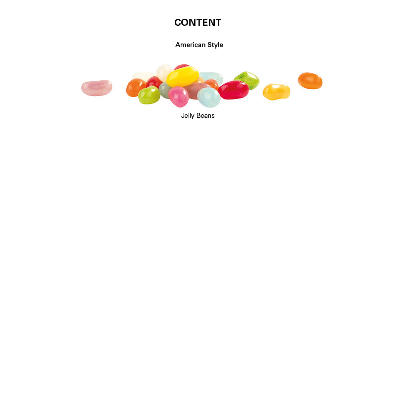 American Style Jelly Beans in Tüte aus weißer Folie, individuell bedruckt. Inhalt: American Style Jelly Beans, bunt gemischt, 10 g.