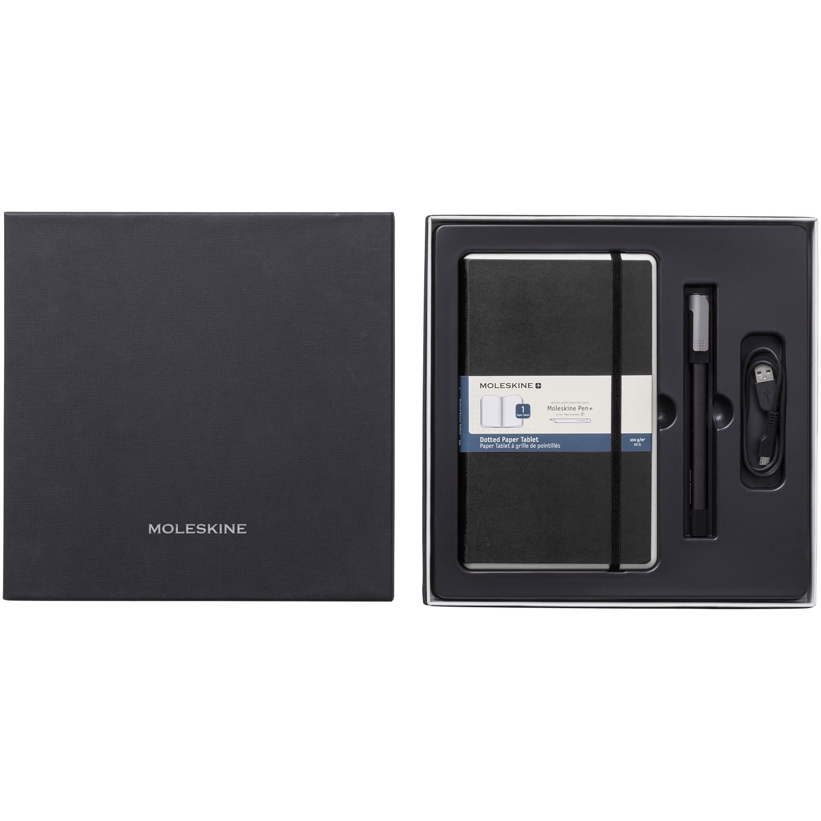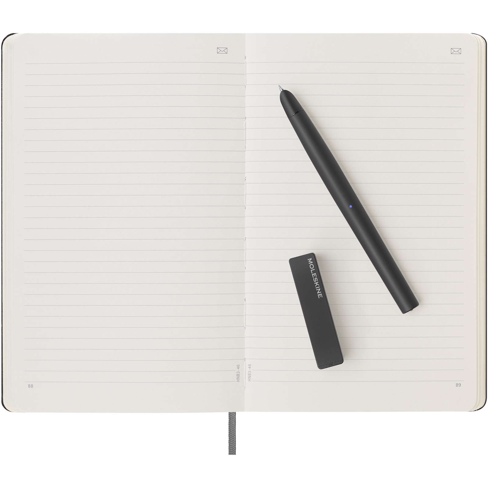 Das Smart Schreibset enthält das meistverkaufte klassische Moleskine-Notizbuch (Large liniert), einen Smart-Stift, ein magnetisches Ladegerät und eine Nachfüllmine. Moleskine hat erkannt, dass wir in unserem Alltag instinktiv eine Kombination aus analogen und digitalen Werkzeugen verwenden. Das Schreibset bietet das Vergnügen des handschriftlichen Schreibens auf Papier mit den Vorteilen der digitalen Technik, egal ob Sie sich auf das Notieren, Skizzieren oder Planen konzentrieren. Inklusive der benutzerfreundlichen Moleskine Notes App, die das einfache Bearbeiten, Organisieren und Teilen jederzeit und überall ermöglicht. Der moderne und elegant geformte Stift kommt mit einem exklusiv entwickelten magnetischen Ladegerät, einer Batterie, die 24 Stunden hält, und einem bequemen Griff für längeres Schreiben. Mit unsichtbaren Ncodes auf jeder Seite kann der Smart Pen die genaue Position im Notizbuch erkennen und eine identische digitale Version Ihrer Notizen auf dem Bildschirm erstellen, die Sie dann bearbeiten, erweitern und digital teilen können.