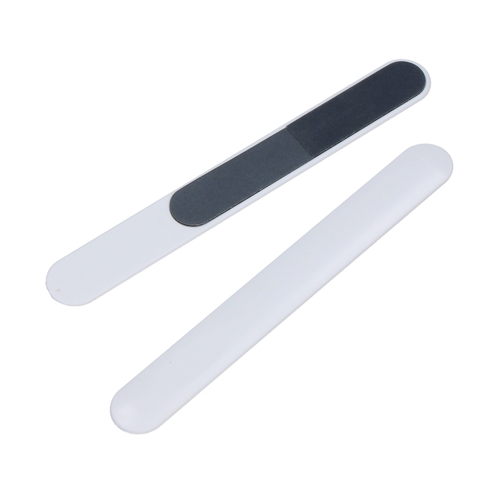 Bringen Sie Ihre Nägel in Form. Nagelfeile aus Kunststoff mit zwei verschiedenen Körnungsgraden auf einer Seite. Die dunklere Fläche ist gröber und eignet sich um schnell und effektiv den Nagel zu kürzen. Die hellere Fläche gleicht kleine Risse aus und versiegelt den Nagel. Durch die Seite ohne Körnung ist die Feile angenehm in der Handhabung.
