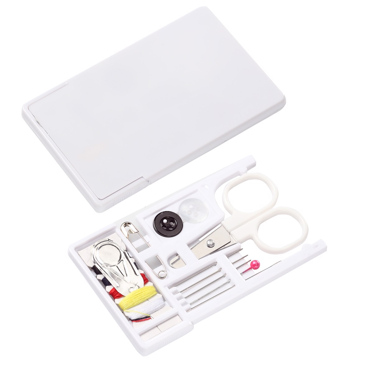 Aufgrund der handlichen Größe praktisch für unterwegs. Tolles Nähset mit einer Schere, zwei Reserveknöpfen, zwei Sicherheitsnadeln, einer Sticknadel, einer Stecknadel, einem Einfädler und einem 6-teiligen Fadenset (braun, gelb, rot, grün, weiß, schwarz). Inkl. weißer Hülse zum Einschieben. Bietet eine effiziente Werbefläche.
