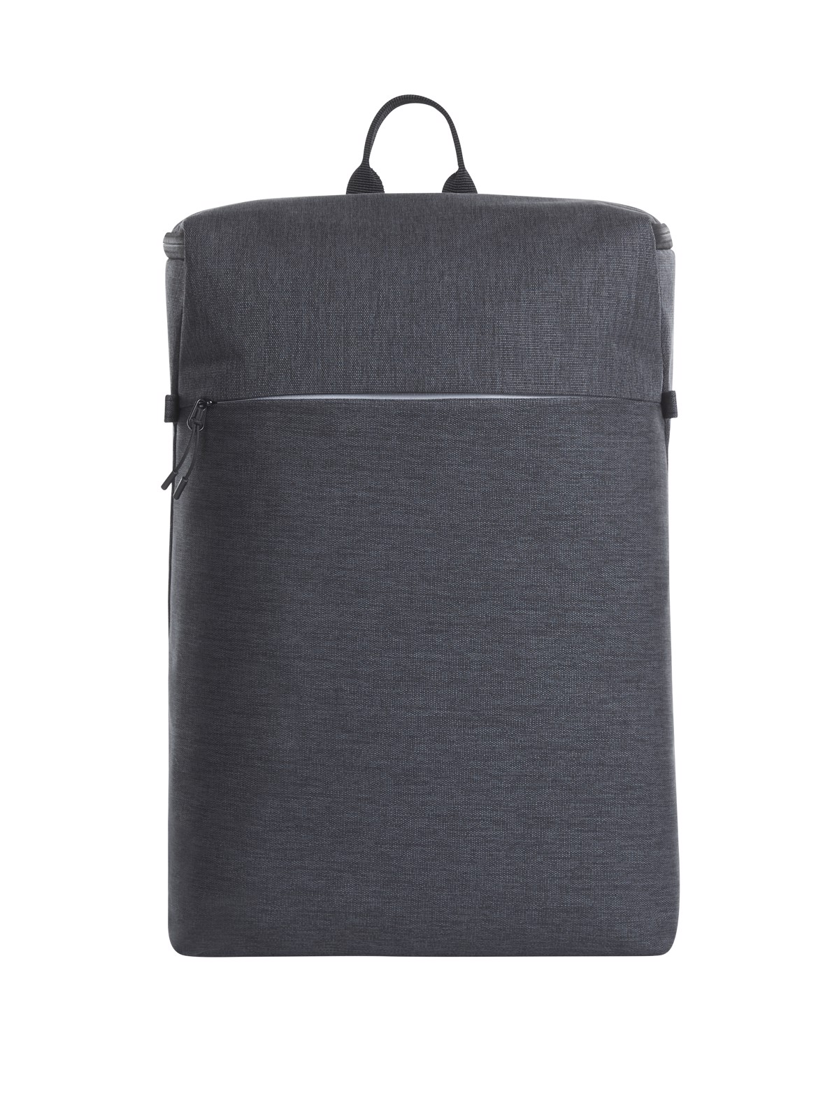 Geradliniger Toplader-Rucksack; 2-Wege-Reißverschluss-Hauptfach; gepolstertes Notebookfach; Einsteckfächer innen; Reißverschluss-Deckelfach; Reißverschluss-Vortasche mit verstecktem Reflex-Zipper und Grifflaschen; gepolstertes Tragesystem; Handgriff