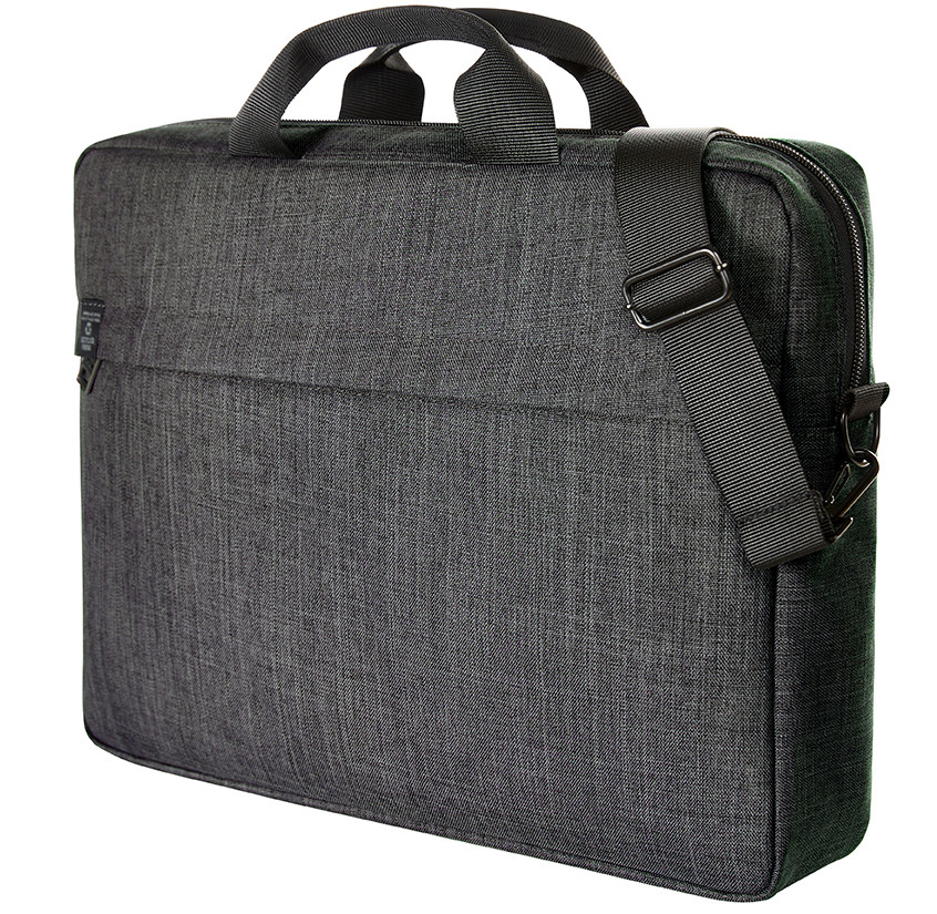 Großes, rückseitig gepolstertes Hauptfach mit 2-Wege-Reißverschluss; rPET Obermaterial; wertige Metall-Accessoires; gepolstertes Einsteckfach z.B. für Notebooks; flache Reißverschluss-Vortasche; rückseitige Befestigung für Trolley-Gestänge; abnehmbarer, längenverstellbarer Schultergurt; Handgriffe