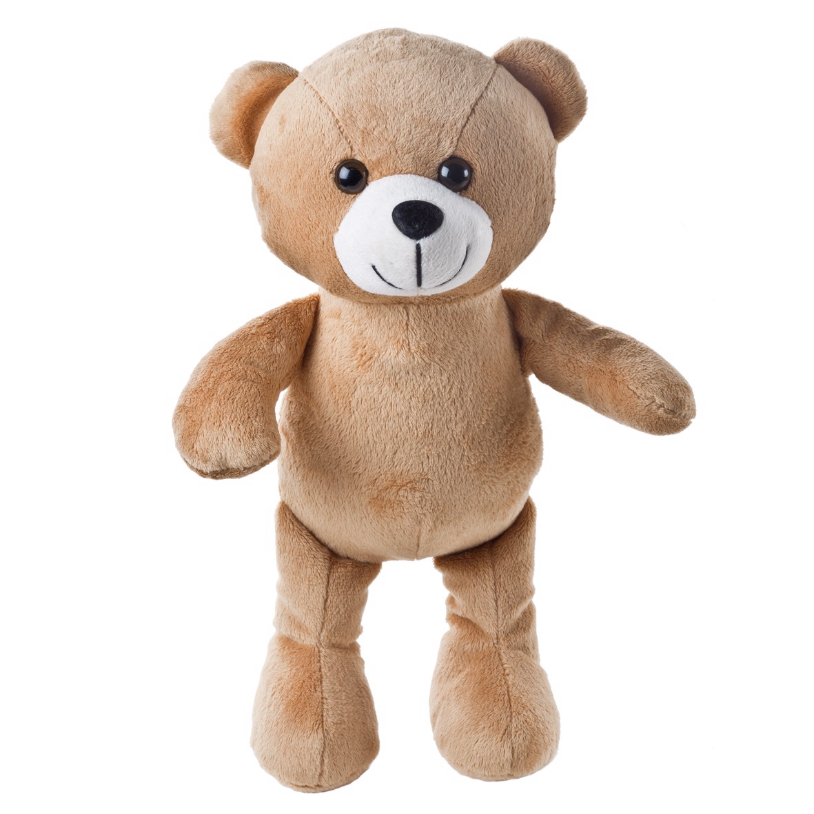 So kuschelig. Brauner Teddybär aus super soft velboa Plüsch. Mund und Nase sind schwarz vernäht, die Augen aus zweifarbigem Kunststoff. Im Gesäß des Bären befindet sich ein Körnersäckchen, damit er auch gut sitzen kann.