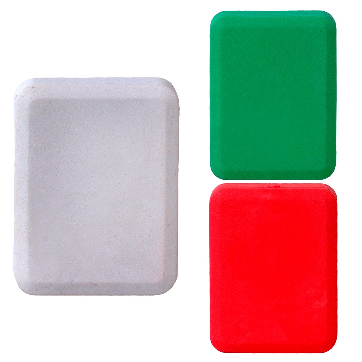Eckiger Radiergummi in verschiedenen Farben.