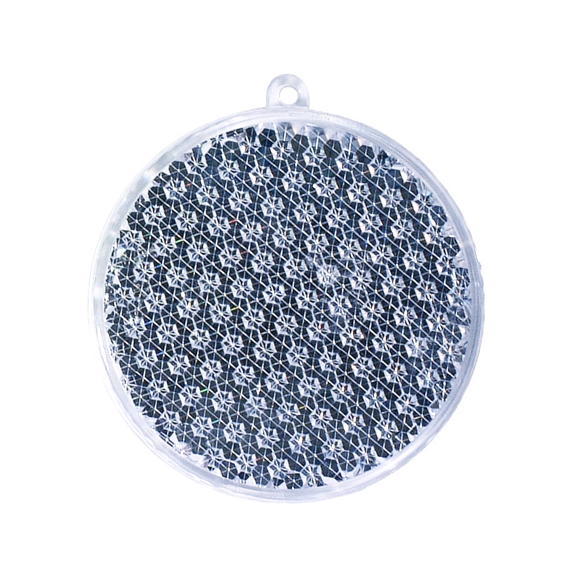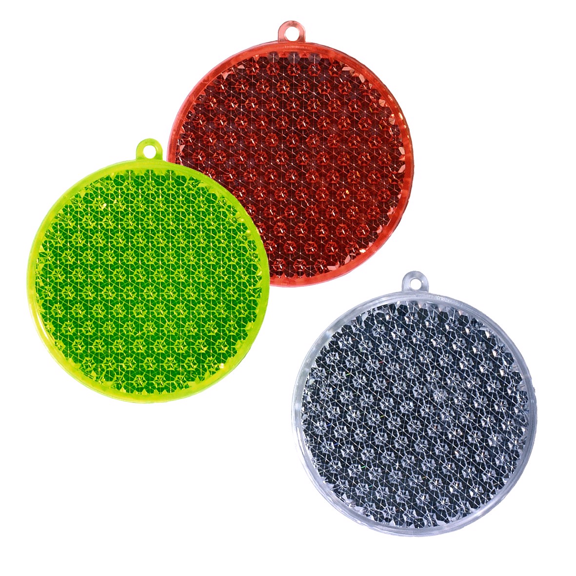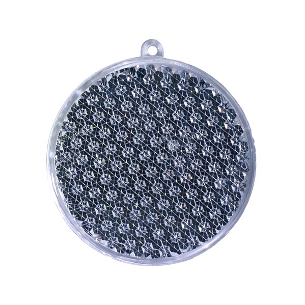 Eine runde Sache. Reflektor in Kreisform. Mit großer Werbefläche, Öse und Schnur. Bei diesem Artikel handelt es sich um einen reflektierenden Werbeanhänger.