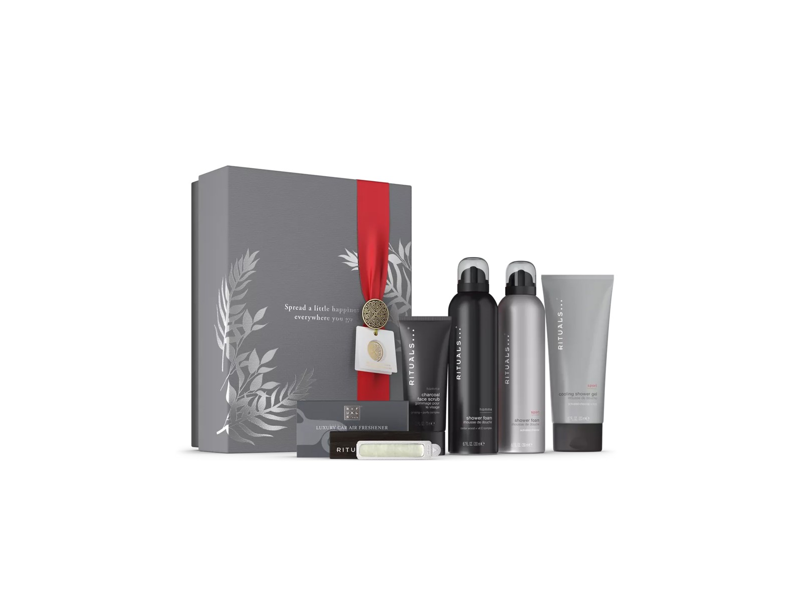 Geschenkset 5 teilig, mit folgendem Inhalt: - 2x Duschschaum 200ml - Cooling Shower Gel 70ml - Charcoal Face Scrub 70ml - Homme Car Perfume Duftnote: Bambus, japanische Minze und Zedernholz