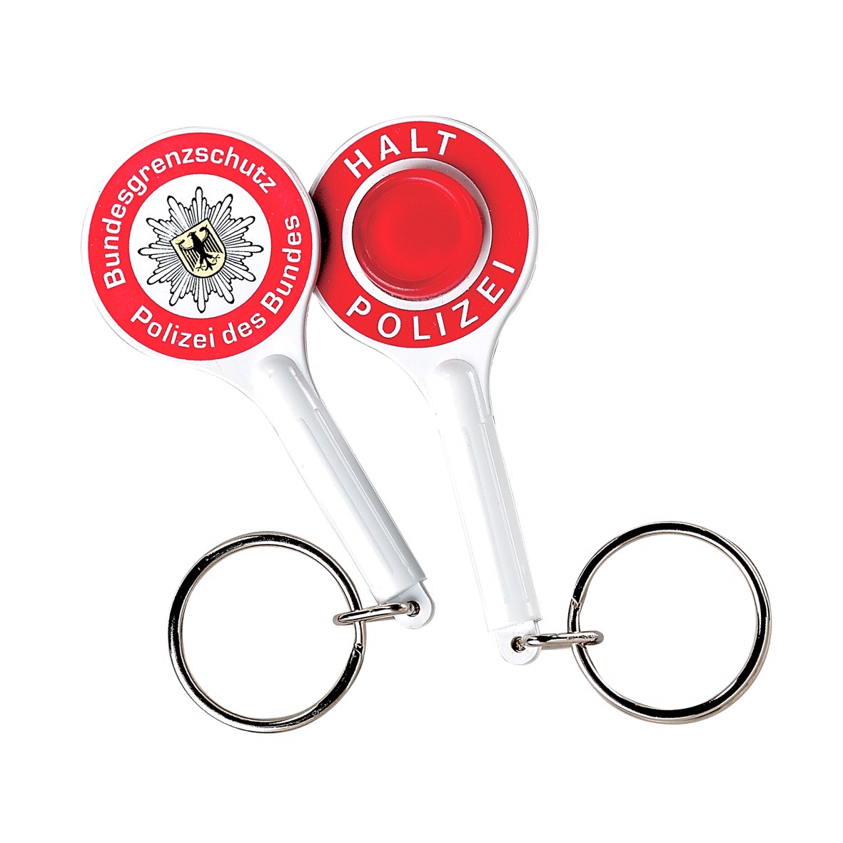 Aufmerksamkeit garantiert. Als Polizeikelle, Feuerwehrkelle oder Bundespolizei-Version erhältlich. Mit Schlüsselring.