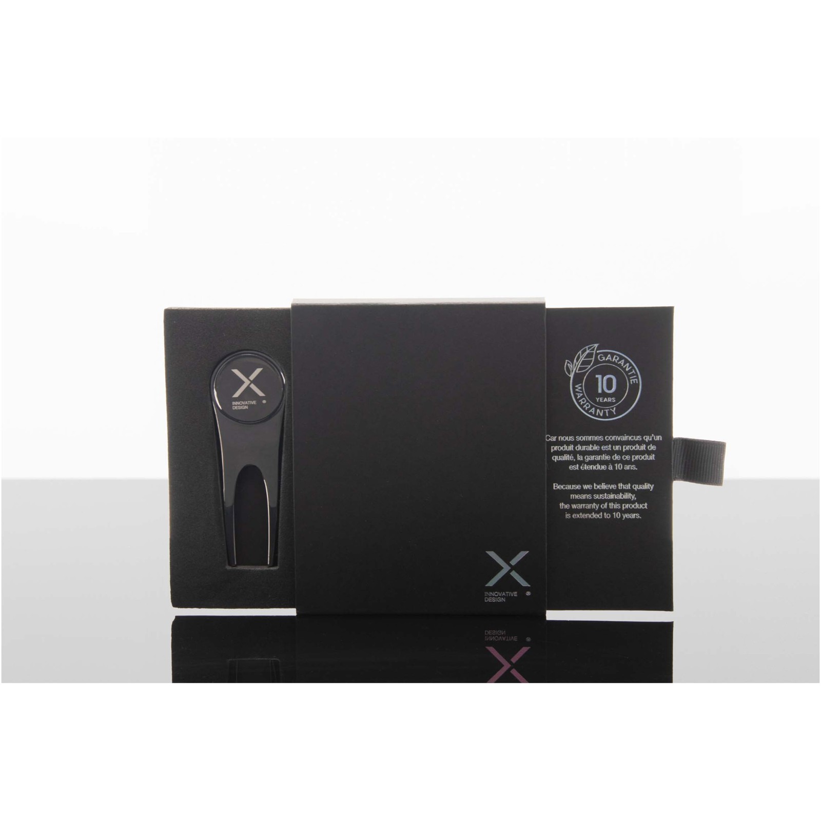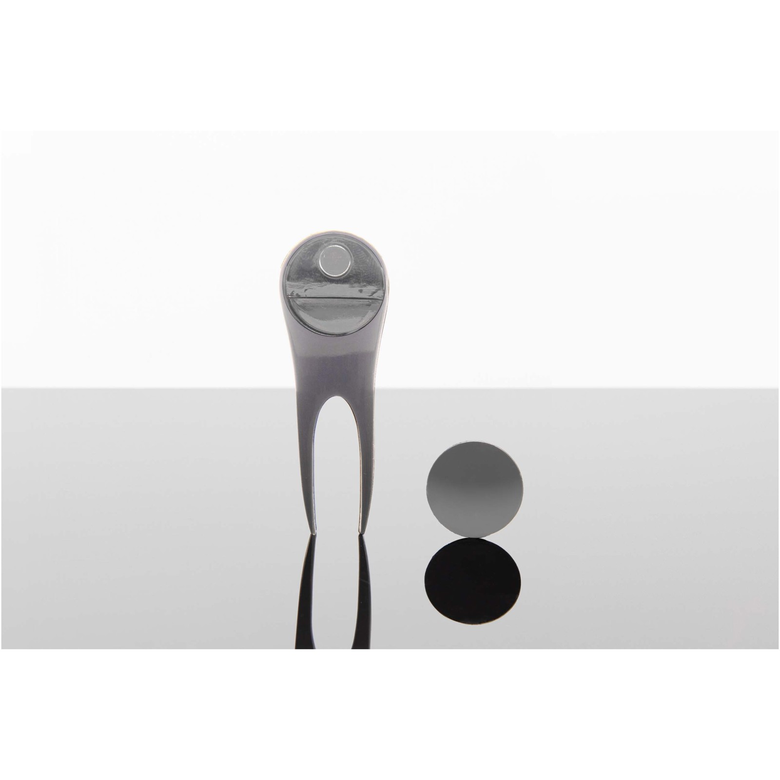 Dieses Golfzubehör kombiniert eine Pitchgabel aus Zinklegierung mit einem magnetischen Ballmarker, um den Golfball mühelos im Auge zu behalten. Verpackt in einer Geschenkbox aus recyceltem Karton. Größe 8 x 2,5 cm.
