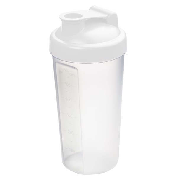 Nach dem Training einen Eiweiß-Shake zubereiten. Dieser transparente Shaker mit geprägter Skala in 50 ml Schritten und Schraubdeckel mit verschließbarer Trinköffnung beinhaltet ein herausnehmbares Sieb, mit dem sich Shakepulver und Flüssigkeit bei gutem Schütteln optimal vermischen. Der Mix-Becher lässt sich komplett auseinandernehmen und somit gut reinigen. Füllmenge: 0,6 Liter.