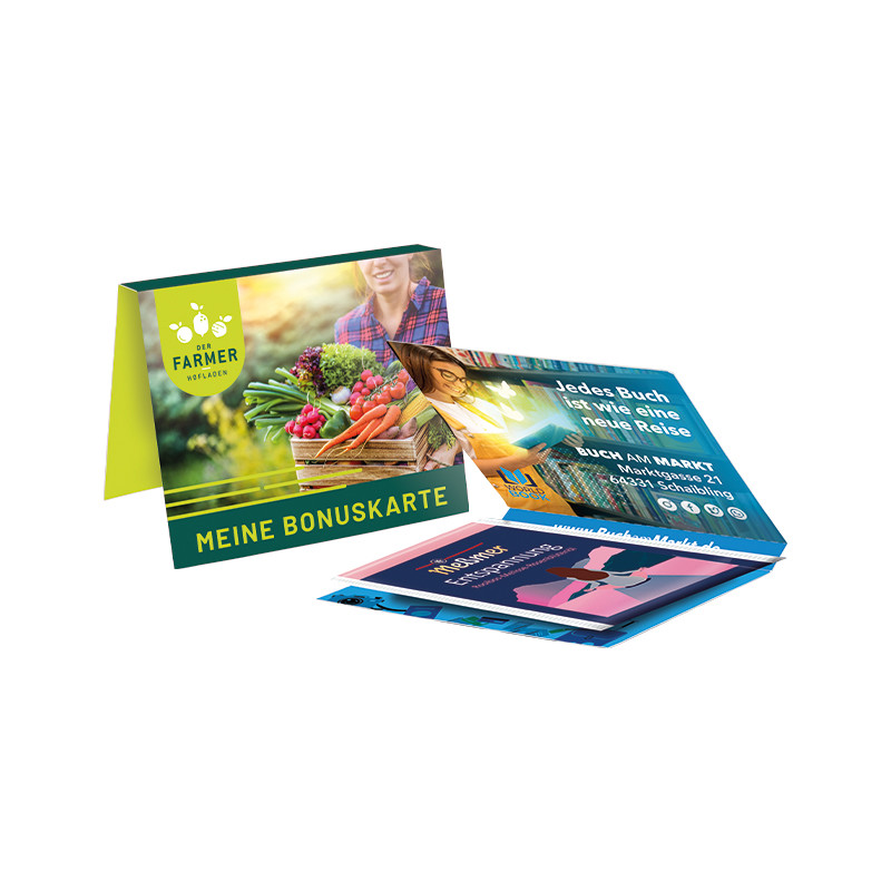 Werbekarte Midi aus weißem Karton und mit praktischer Abreißperforation, individuell bedruckt. Inhalt: 1 Meßmer Teebeutel Früchte-Mischung 3 g Preise zzgl. Einrichtkosten je Auftrag/Motiv pauschal: 109 €