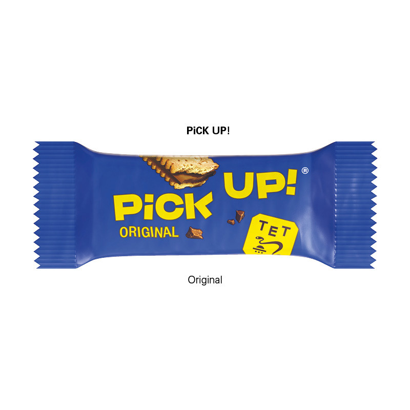 Werbekarte Midi aus weißem Karton und mit praktischer Abreißperforation, individuell bedruckt. Inhalt: 1 PiCK UP! mini Original Keksriegel mit Milchschokolade 10,5 g Preise zzgl. Einrichtkosten je Auftrag/Motiv pauschal: 109 €