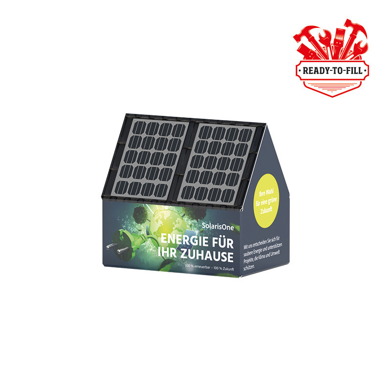 House packaging made of white cardboard, individually printed. The motto for the contents is: “Ready to fill”. Send us your product and we will pack it in the 3D product . The packaging of simple products of one type is included in the price. Complex product packaging on request. Manufacturer:SWEETVERTISING | Ernst-Minner-Straße 13 | DE-99310 Arnstadt | info@sweetvertising.de