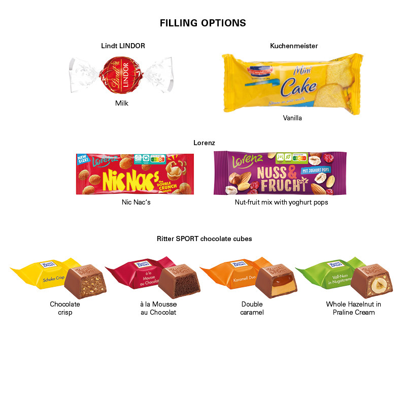Truck packaging made of white cardboard, individually printed. Content: 1 bag Lorenz nut & fruit mix with yoghurt pops 40 g Additional printing costs per order/motif flat rate: 109 €