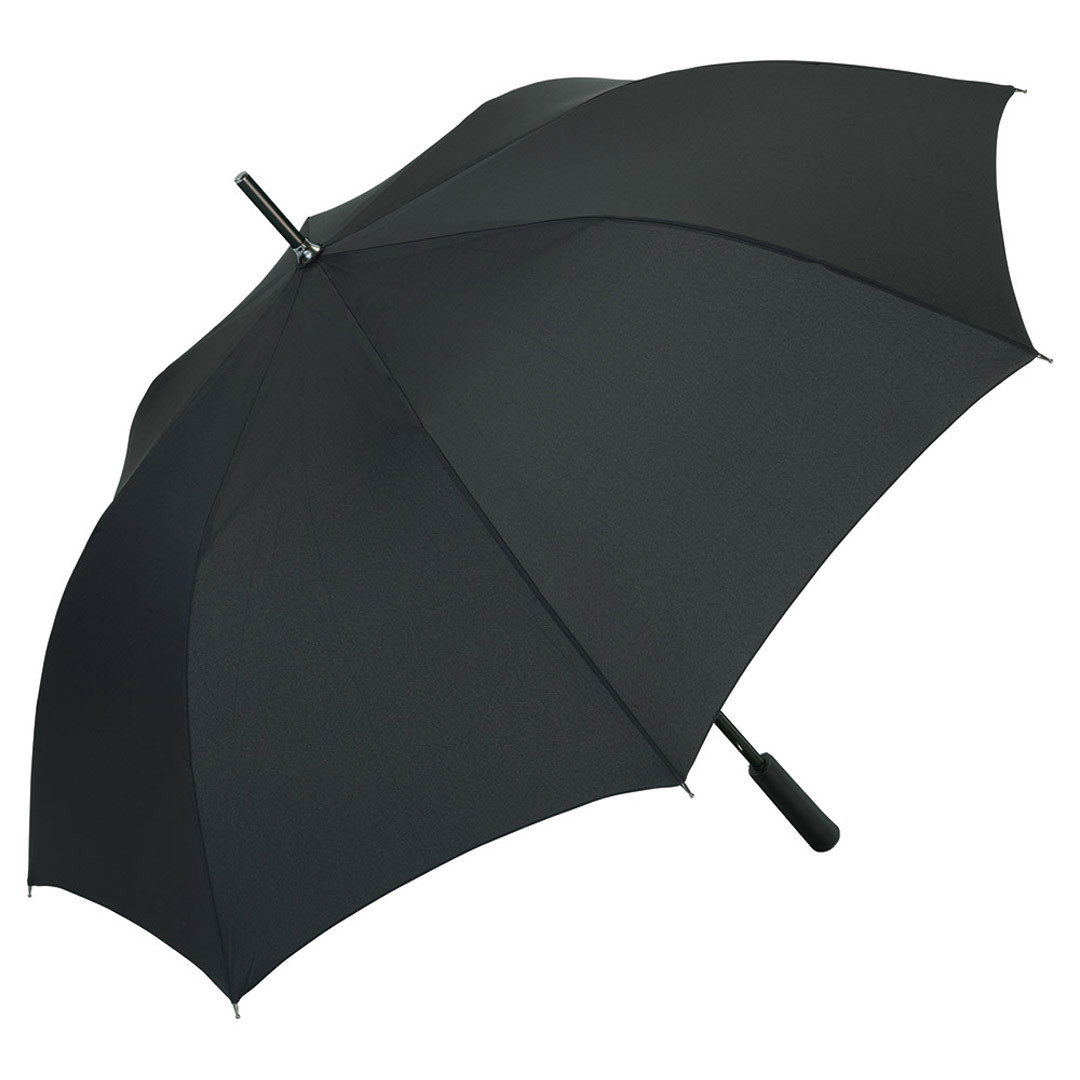 Convenient automatic function for quick opening, Windproof system for higher frame flexibility and stability in windy conditions, frame with lotus shaped fibreglass rib construction for extra stability, lightweight and robust aluminium shaft in black, water and dirt-repellent cover properties through original Teflon™ fabric protector, Soft-Touch handle with integrated push-button and promotional labelling option, large, accommodating diameter