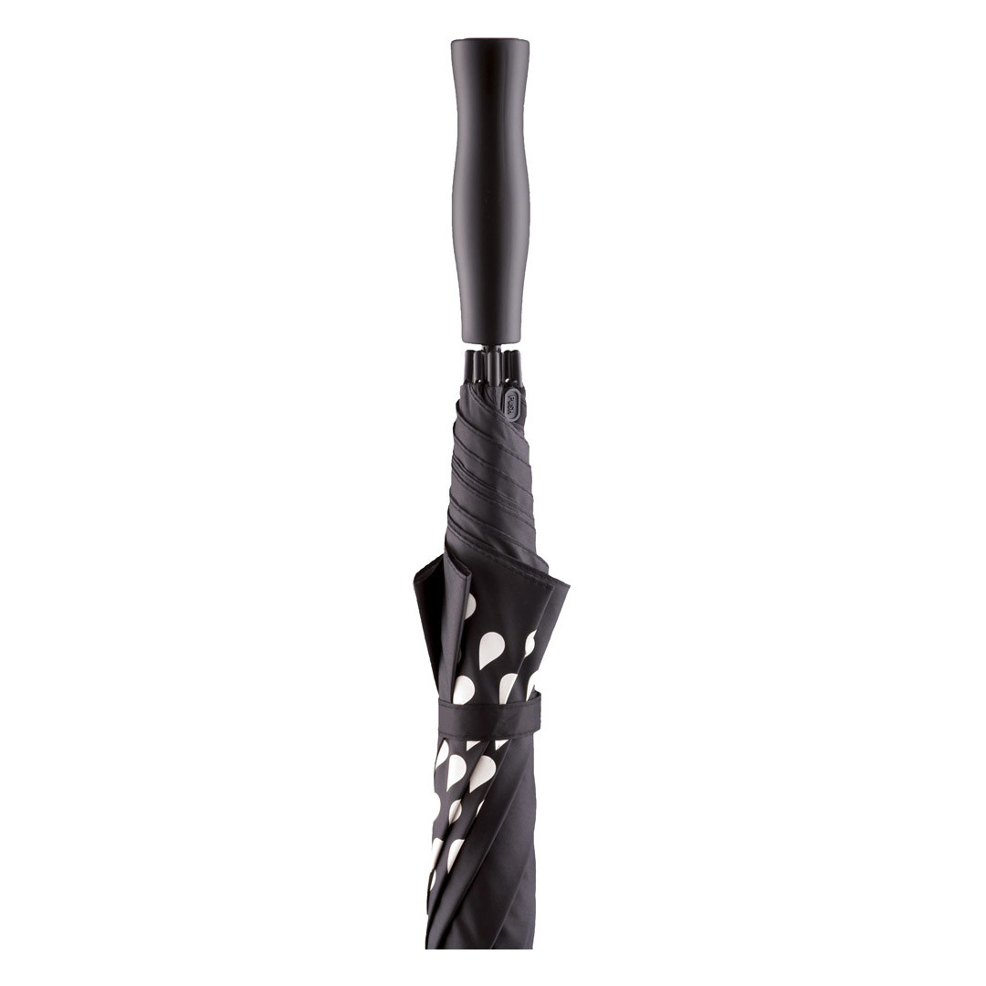 Convenient automatic function for quick opening, Windproof system for higher flexibility and stability in windy conditions, flexible fibreglass ribs, cover with special imprint on two panels, white rain cloud motif is visible in dry condition, coloured rainbow-motif becomes visible in wet conditions, dull black handle with promotional labelling option, higher corrosion protection due to galvanized steel shaft, awarded with marke(ding) Award 2012. Also available as mini umbrella (art. 5042C).