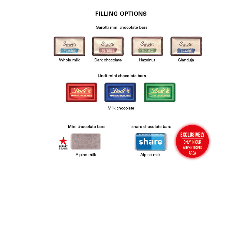 Advent calendar house in solid cardboard cover with recyclable inlay, printed individually all round. Content: 24 Alpine milk chocolate bars, wrapped in glassine paper (can be disposed of in the paper bin) 72 g Seasonal article - while stocks last! Additional printing costs per order/motif flat rate: 109 €