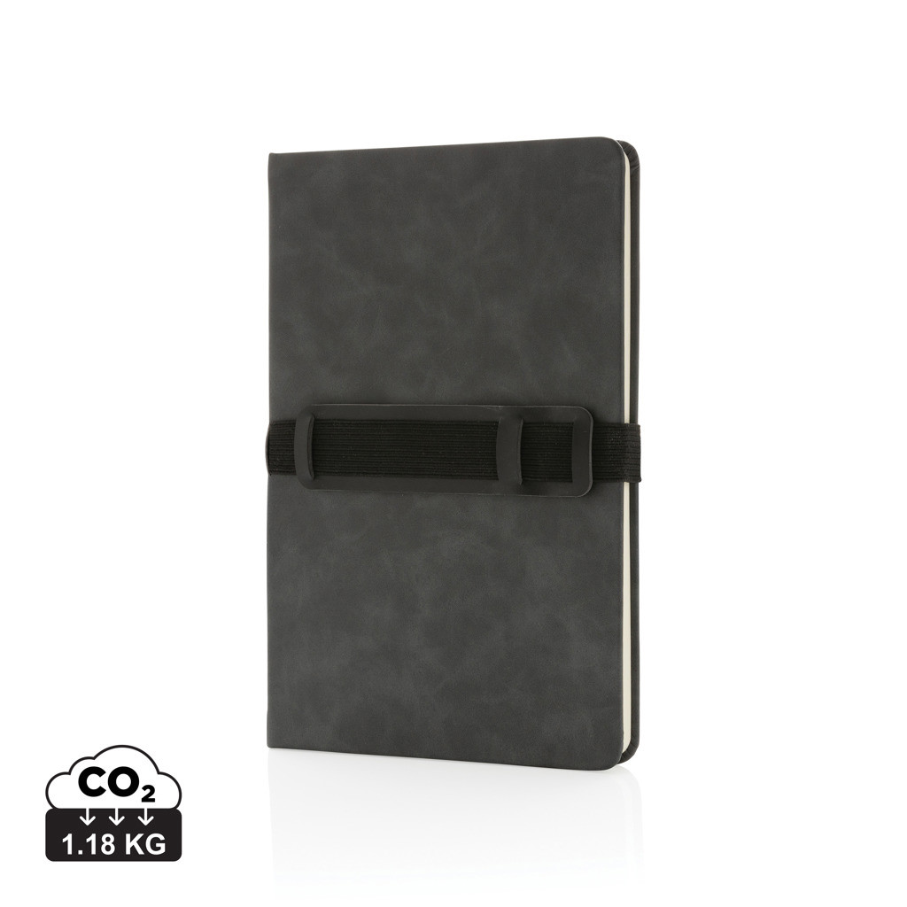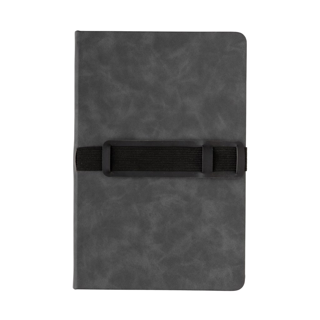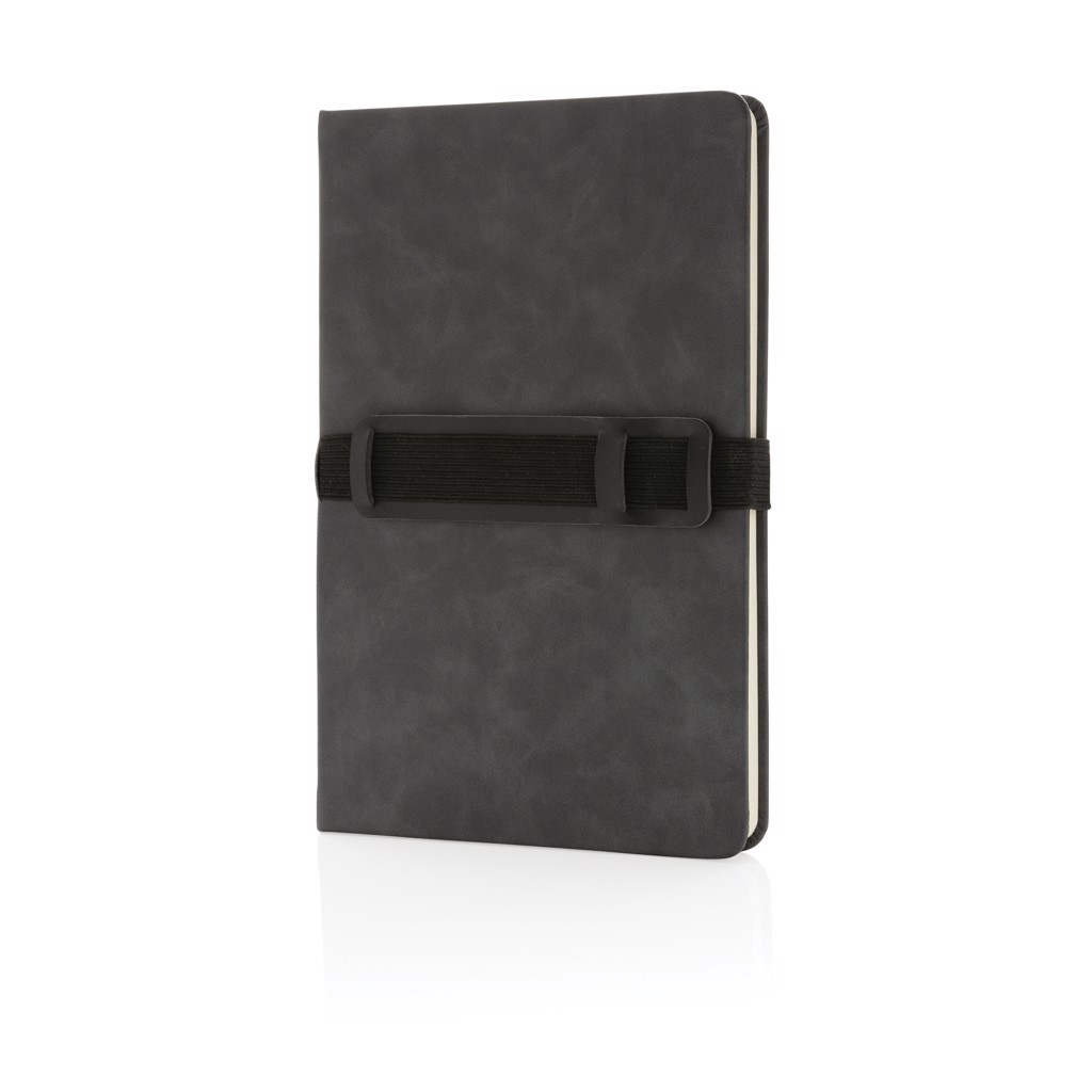 Be ready and prepared for any meeting with this deluxe hardcover PU notebook. Stylish and soft to the touch. The notebook features 80 sheets/160 pages of 70 gm/s cream coloured lined pages. The front of the notebook features a horizontal elastic strap which holds your pen and phone.