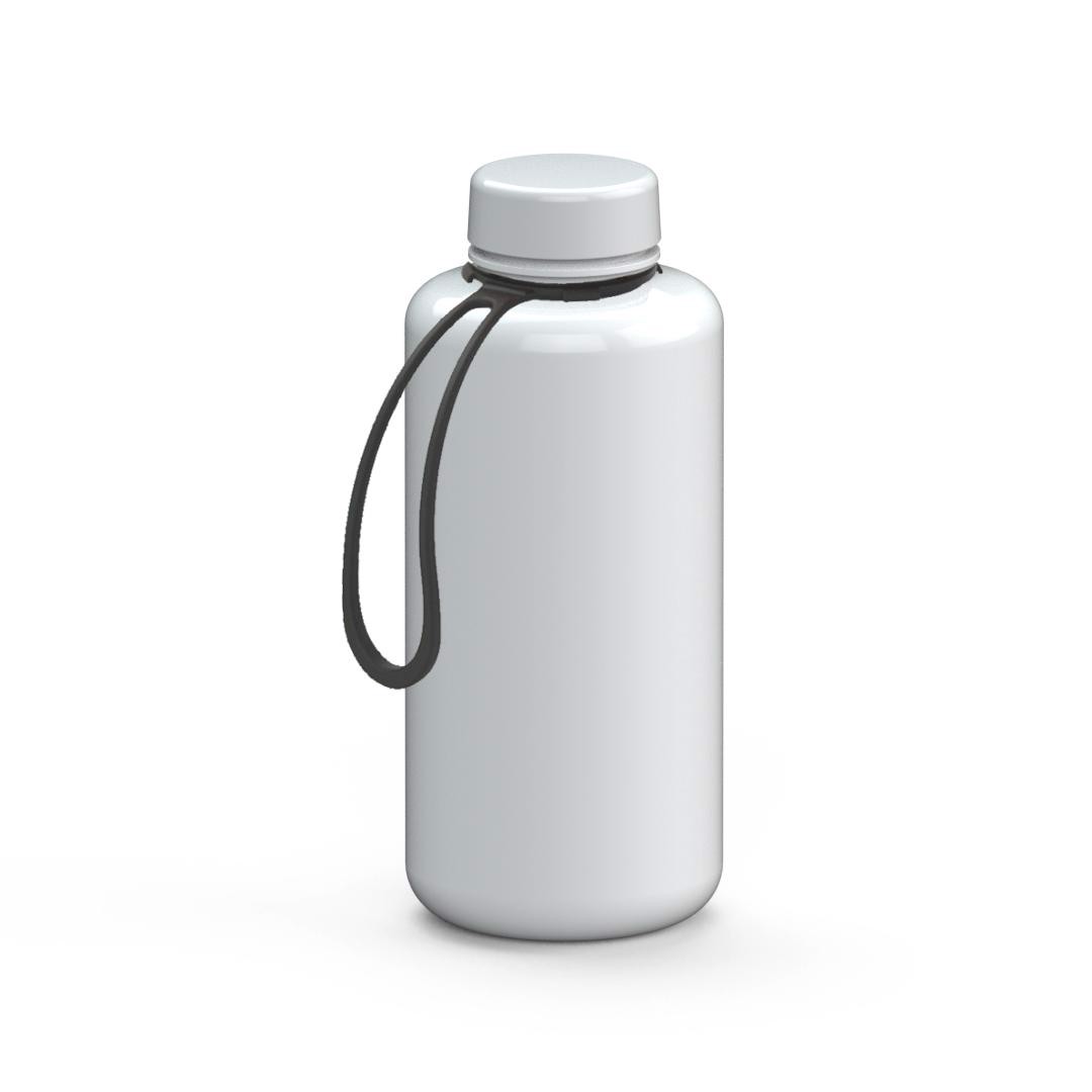 The all-rounder. Neutral-tasting water bottle made from solid coloured Tritan and an ABS lid: the perfect design for adding a UV-digital print. The wide opening makes it easy to fill and clean the bottle. The cap is easy to open, leakproof and suitable for carbonated beverages. Incl. silicone strap. Capacity: 1.0 litre.