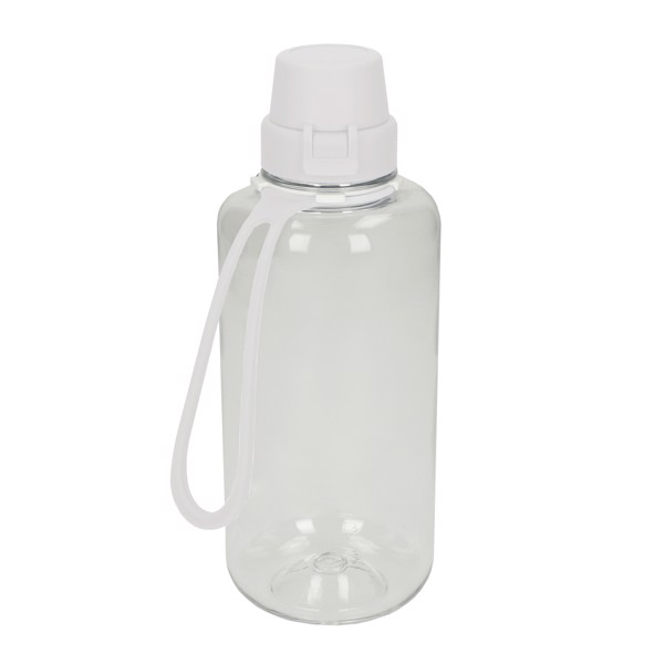 The perfect bottle for nursery, school or leisure. Practical, neutral-tasting water bottle made from durable TritanTM with a silicone strap. This makes it easy to carry the bottle on your wrist, for example. Thanks to the wide opening, the bottle is easy to fill. The child-friendly cap is easy to open. Leak-proof for non-carbonated drinks. Capacity: 1.0 litre.