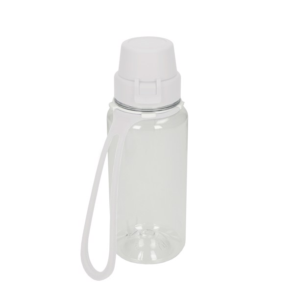 The perfect bottle for nursery, school or leisure. Practical, neutral-tasting water bottle made from durable TritanTM with a silicone strap. This makes it easy to carry the bottle on your wrist, for example. Thanks to the wide opening, the bottle is easy to fill. The child-friendly cap is easy to open. Capacity: 0.4 litre.