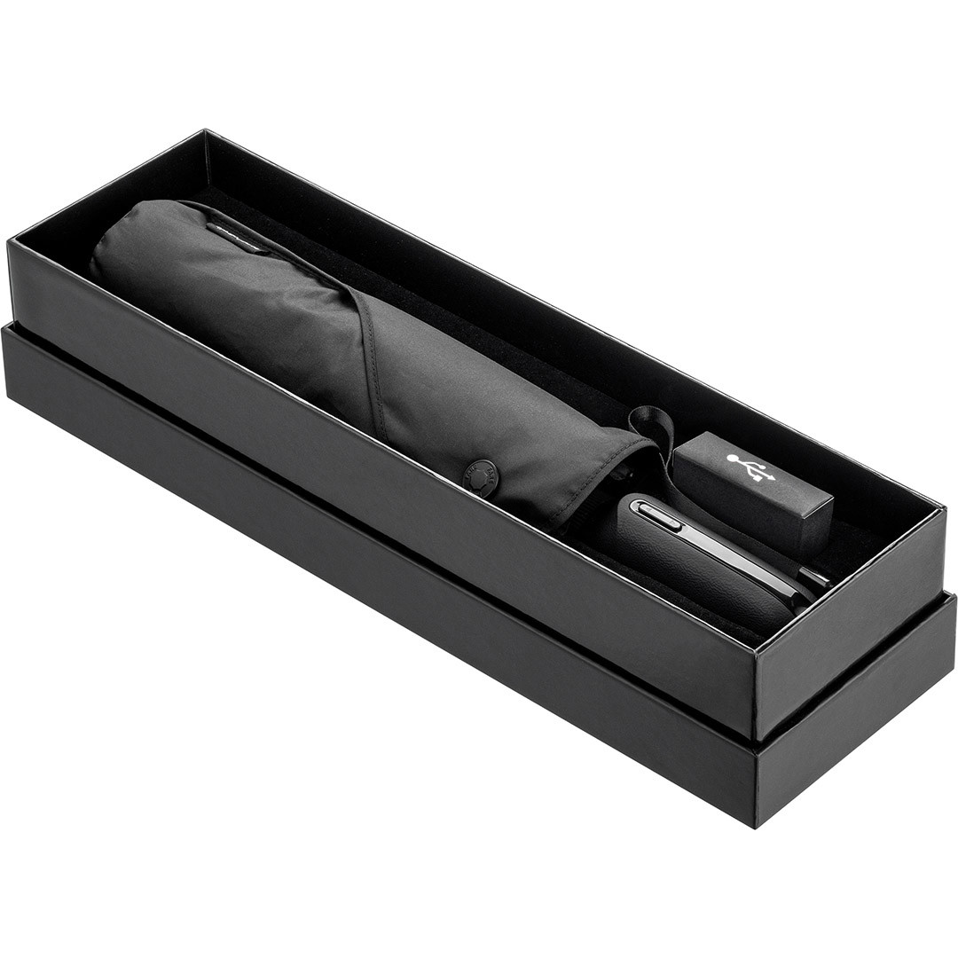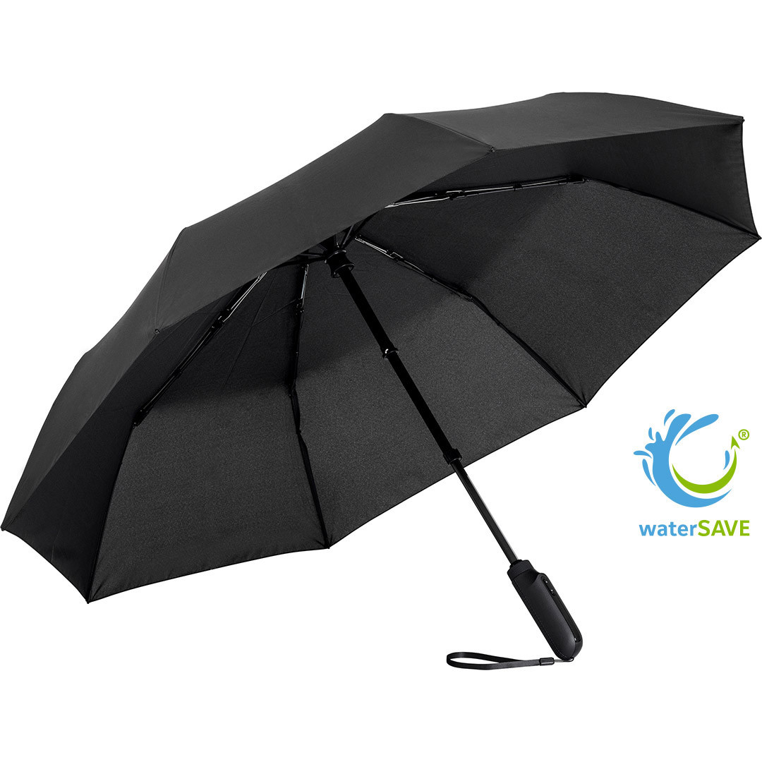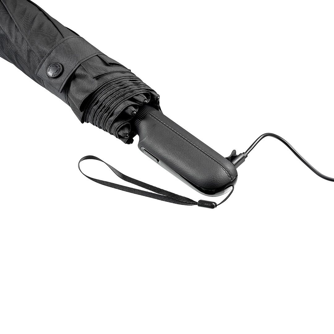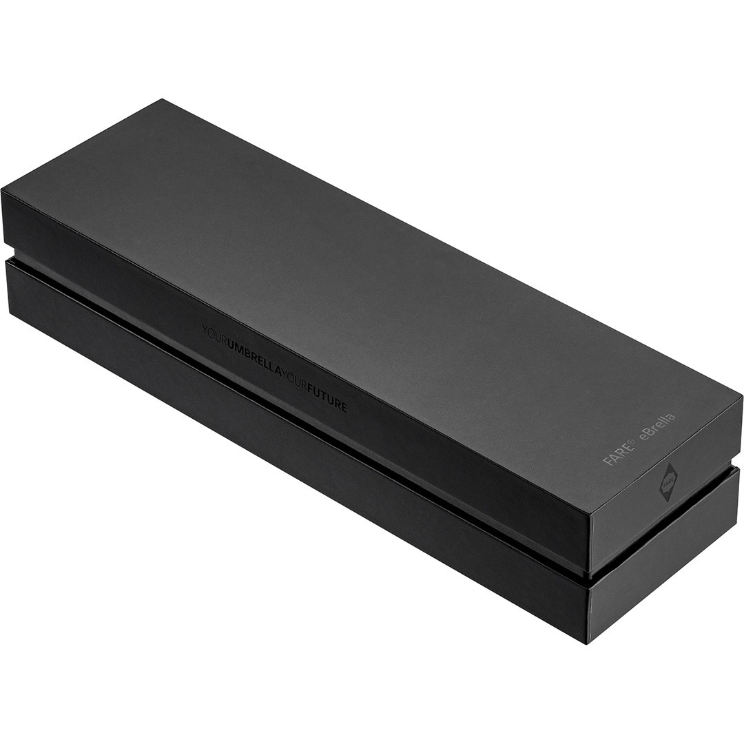 Personalisation by handle laser engraving from just 1 piece! High-precision mechanics and control, manual operation possible when battery is empty, high-quality Windproof PLUS system for maximum frame flexibility in stronger gusts of wind, water-saving dyed polyester Pongee waterSAVE® cover material made from recycled plastics, with waterSAVE®label on the closing strap, splash-proof soft feel handle in leather look with integrated release button, carrying strap, fast micro motor with gearbox, long-life lithium-ion battery, battery indicator light, USB-C charging port, high-quality sleeve with push button, individually packaged in an elegant matt black box with velvet-covered foam insert and inscription “Your umbrella, your future”, incl. USB-C charging cable, WEEE reg. no. DE 14360689, batt. reg. no. DE 52803080, USB C ion battery included in the scope of delivery.