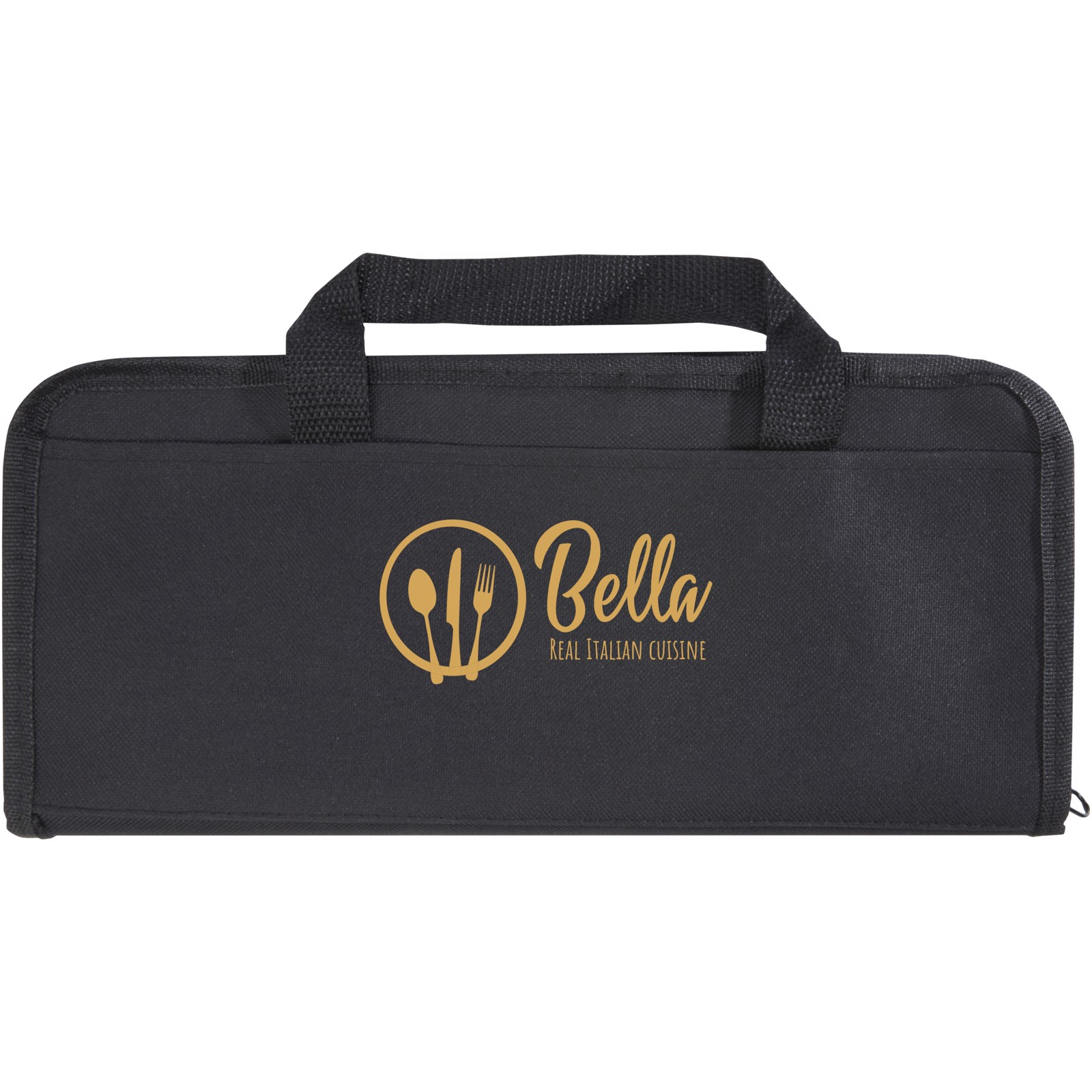5-piece BBQ set with a shovel (29 x 7 cm), fork (29 x 1.7 cm), knife (29 x 2.4 cm), cutting board (19 x 13 x 1.1 cm), and a glove (25 x 16 cm).
