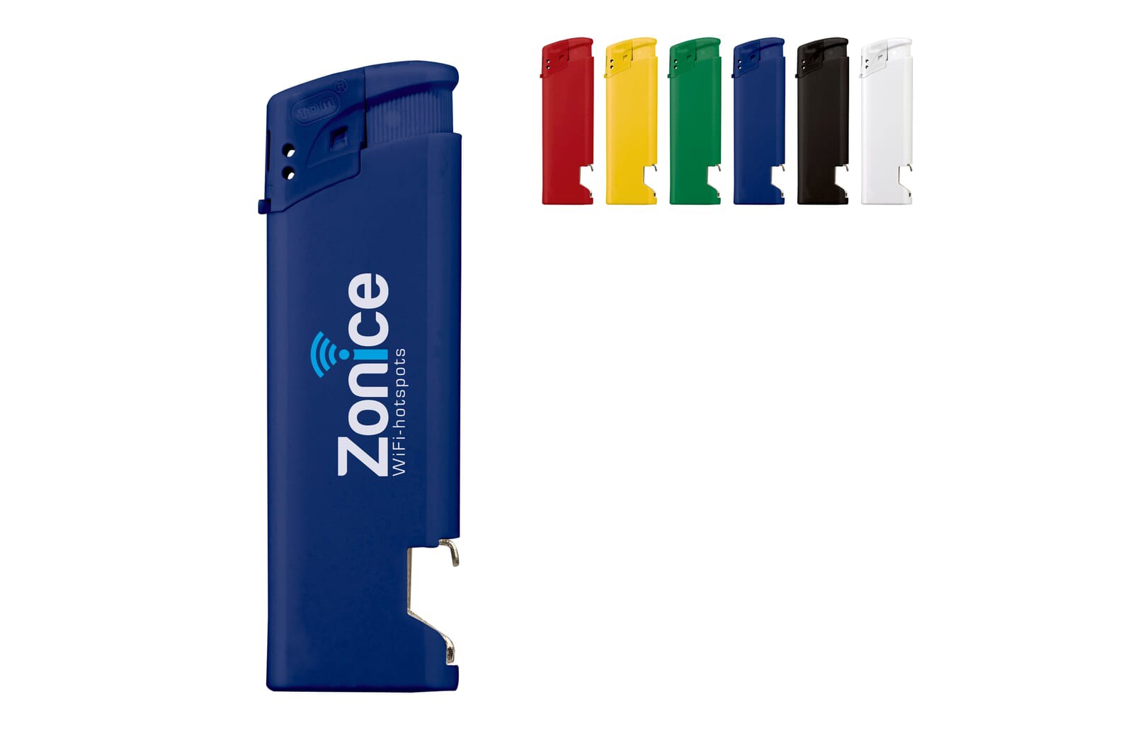 Electronic lighter with bottle opener. Child-resistant and refillable.