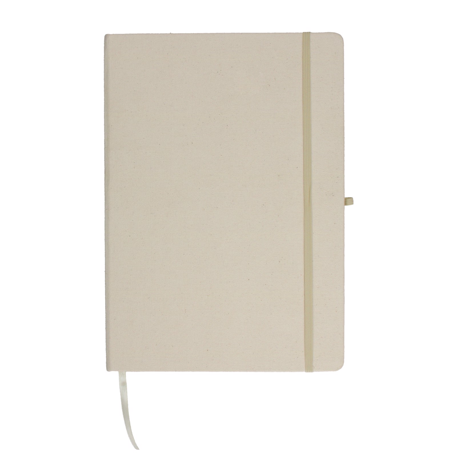 It is trendy to be natural. Cool notebook with cotton (70 %) and polyester (30 %) binding including a elastic closure. Size DIN A4, 96 sheets (70 g) of natural-coloured paper, squared with date/date imprint and narrow border all around. Also with band as bookmark.