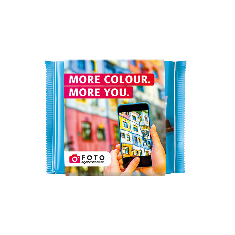 Ritter SPORT chocolate in a promotional slipcase made of white cardboard, individually printed. Content: 1 Ritter SPORT Chocolate Bar Yogurt, 100 g.