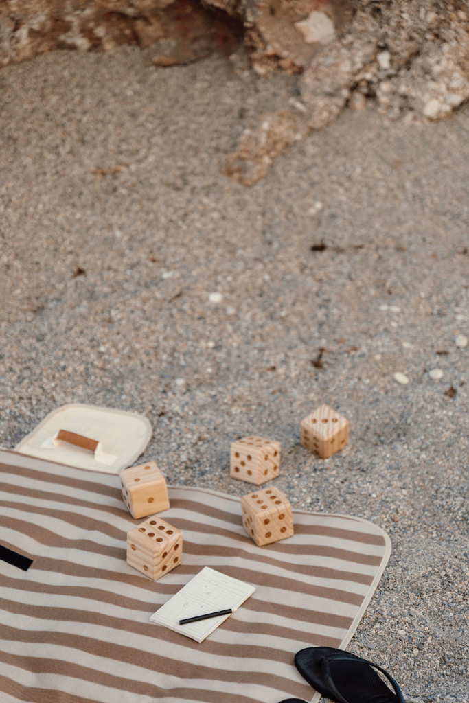 The outdoor yacht game is the classic dice game that is perfect for lovely outdoor days. The goal of the game is to get the highest possible score by rolling and combining the dice in different ways. The game is easy to learn and can be played by all ages. 5 dice, measuring 7x7x7cm, a notepad and pencil is included. Packed in a cotton bag with a mesh back. Manual included. All wooden parts are crafted from high-quality FSC®-certified pinewood, ensuring wood from responsibly managed forests.