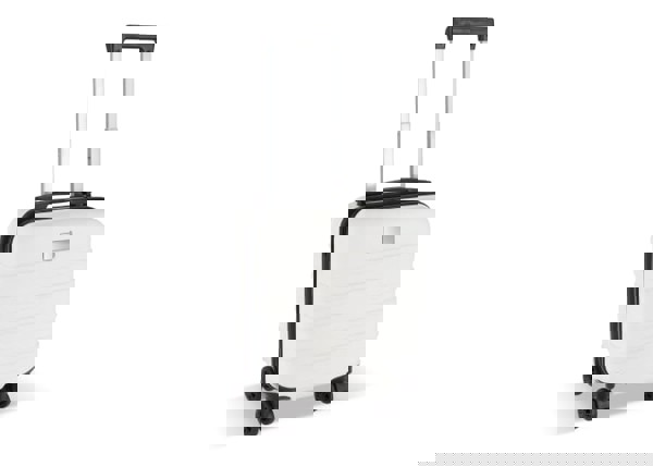 Valise cabine compacte respectant les limites de nombreuses compagnies low cost, se glisse sous le siège. Légère et maniable avec quatre roulettes pivotantes, dotée d’un cadenas à combinaison et d’un support téléphone intégré à la poignée, elle rend l’attente à l’aéroport, en gare ou sur le quai plus agréable.