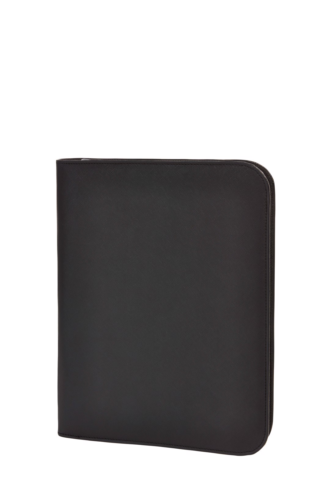 Porte-document avec éléments organisateurs; fermeture par élastique ; bloc papier ; pochette plate ; anneau élastique pour stylo
