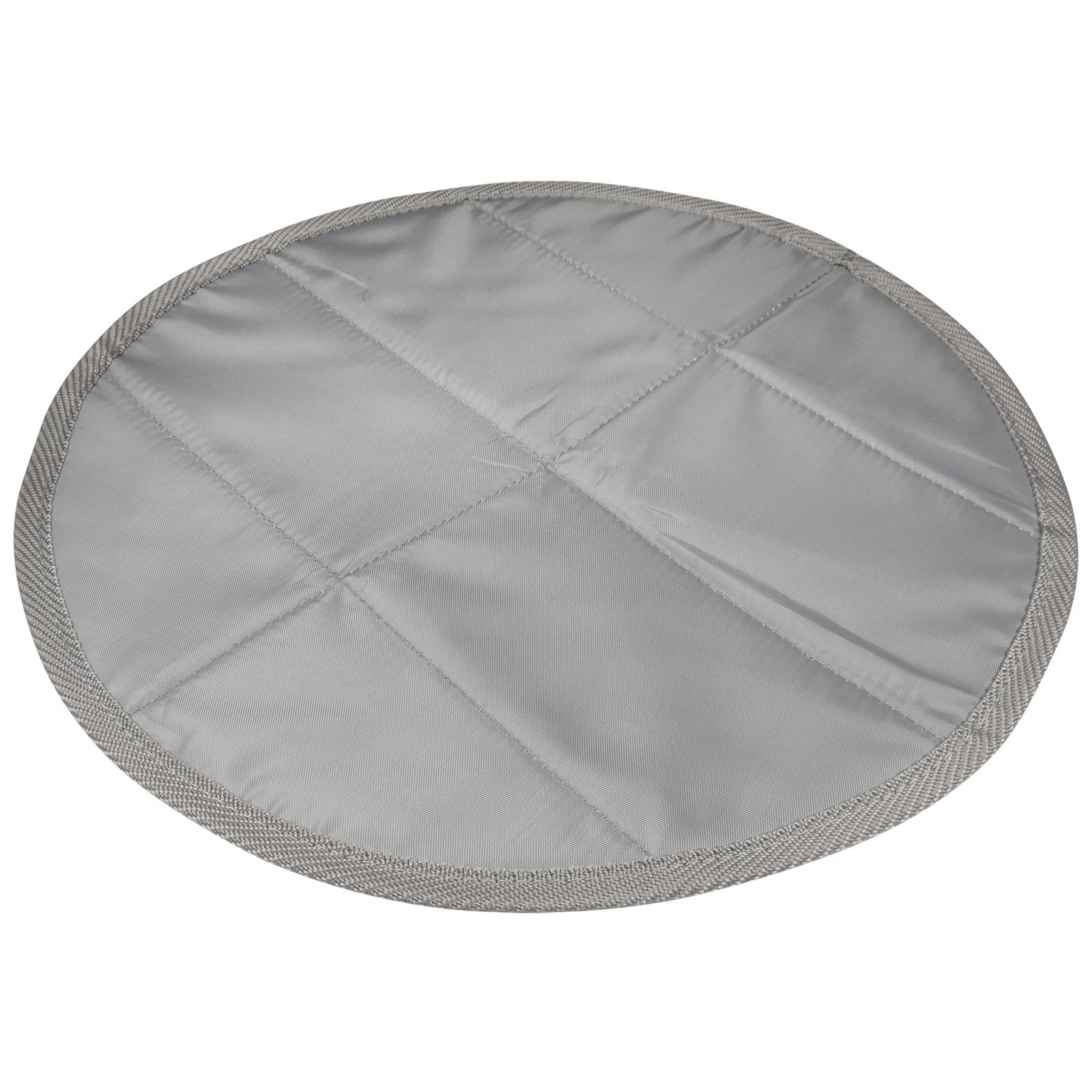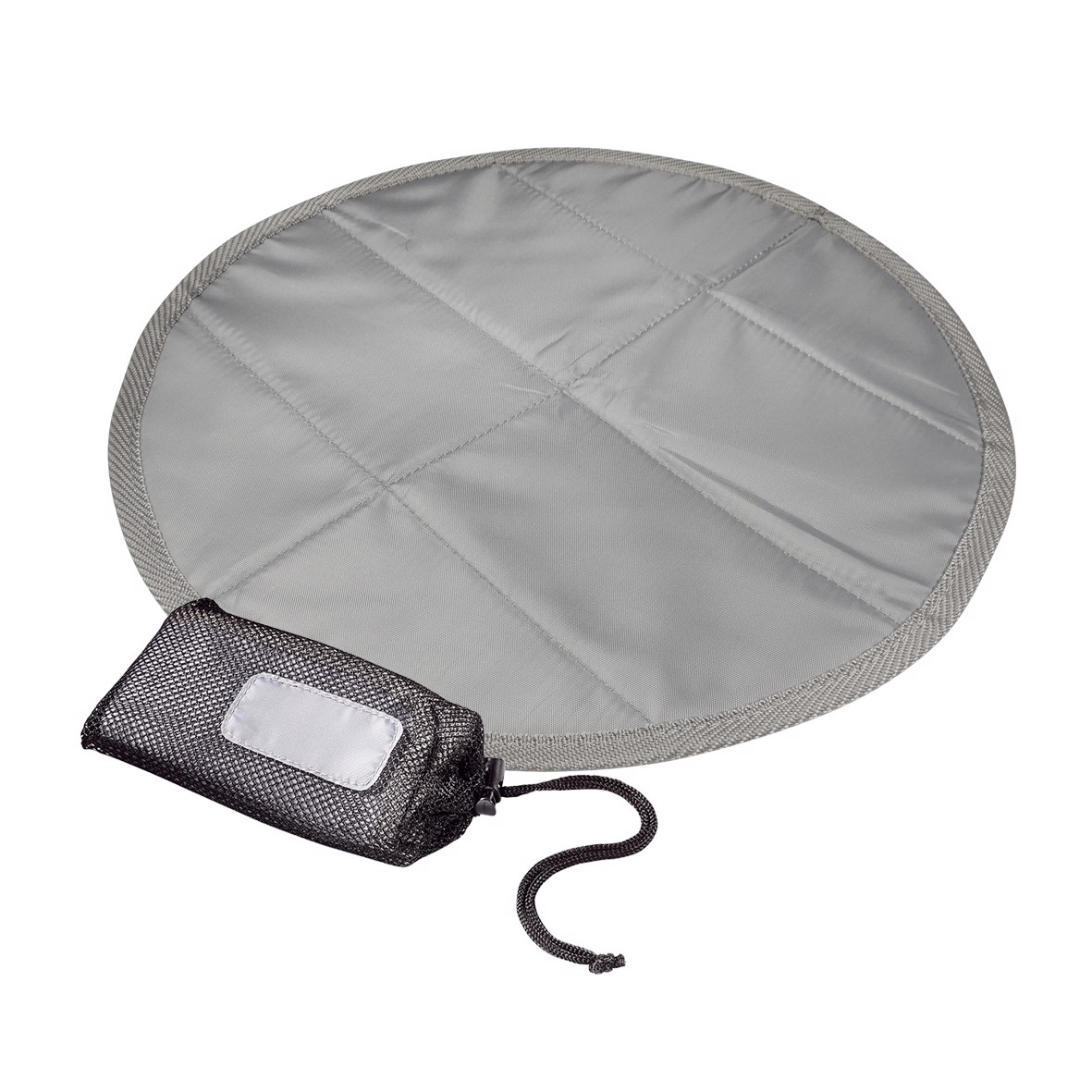 Pratique pour les voyages. La face supérieure du coussin rond est en polyester 210 D et sa face inférieure est revêtue d'un film d'isolation en aluminium pour vous protéger du froid et de l'humidité. Pliable grâce aux coutures de plis et peu encombrant, à stocker dans une pochette en filet comportant un cordon. Le logo publicitaire peut être placé directement sur le coussin et la pochette en filet.