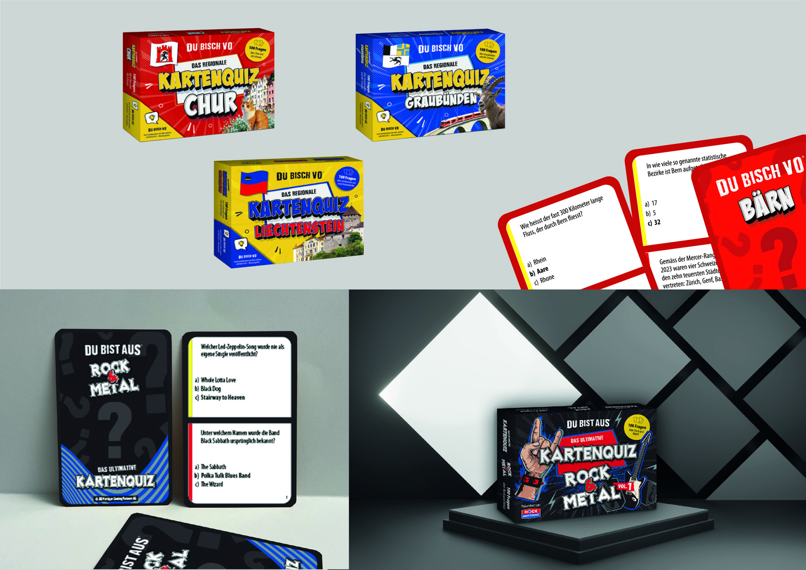 Entdecke das regionale Kartenquiz! Fordere deine Freunde und Familie mit 100 spannenden Fragen zu Geschichte, Geografi e, Kultur, Politik, Sport und Sehenswürdigkeiten deiner Region heraus. Bis zu vier Personen können sich in verschie-denen Schwierigkeitsstufen messen und dabei ihr Wissen erweitern. Klein, handlich und ideal für unterwegs – dieses Quiz ist der perfekte Begleiter für jede Reise oder einen gemütlichen Abend zu Hause.