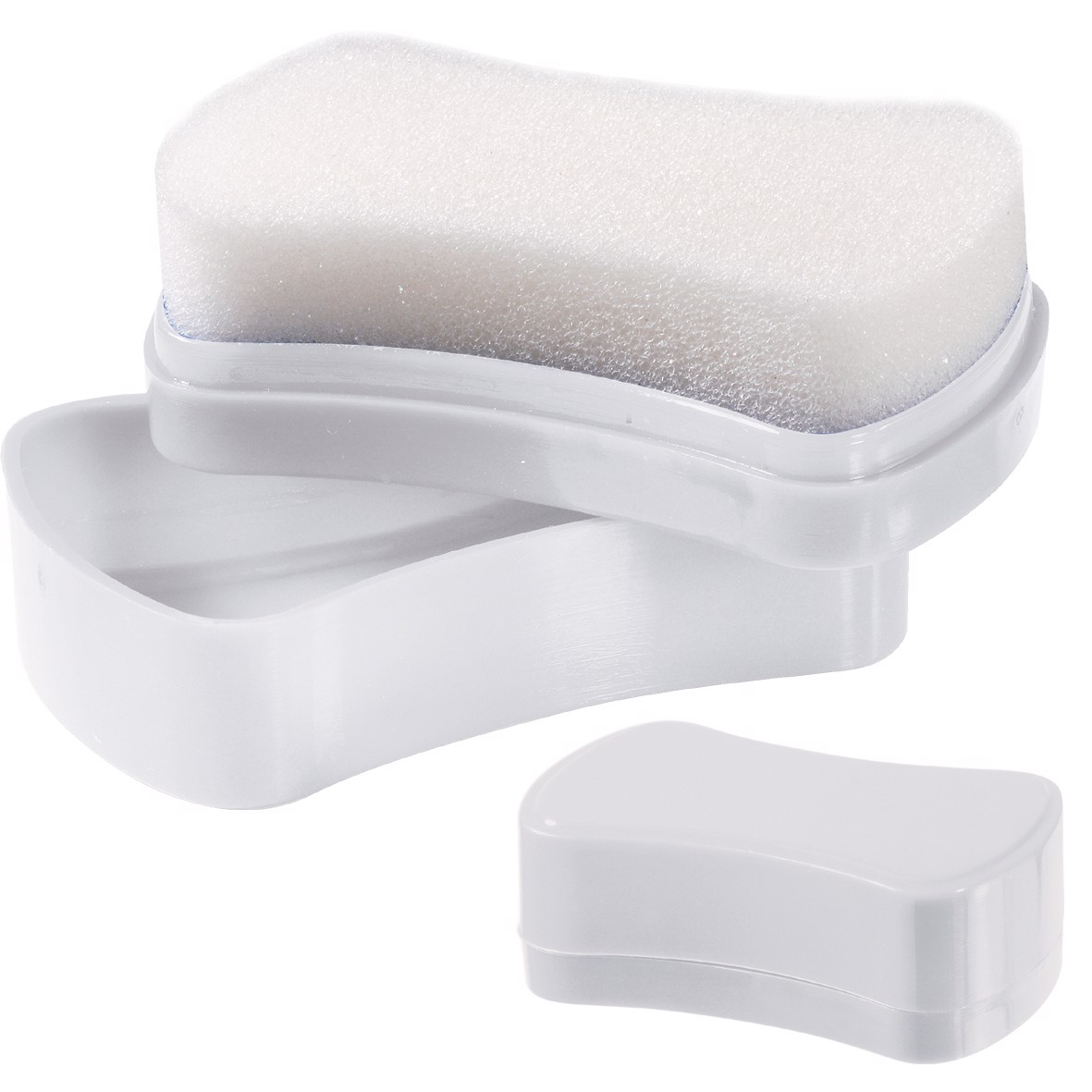 Éponge imbibée pour le nettoyage des chaussures de toutes couleurs. Livrée dans un étui en plastique.