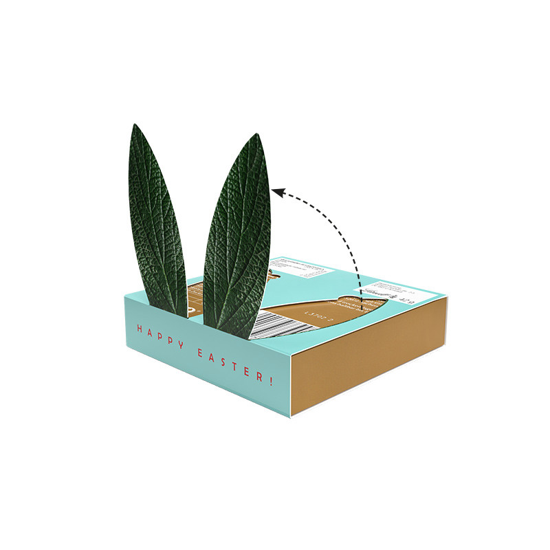 Lindt Easter Mixture in a praline box, with a promotional slipcase made of white cardboard, individually printed Slipcase also with various seasonal shapes to break out and fold up and different filling options.