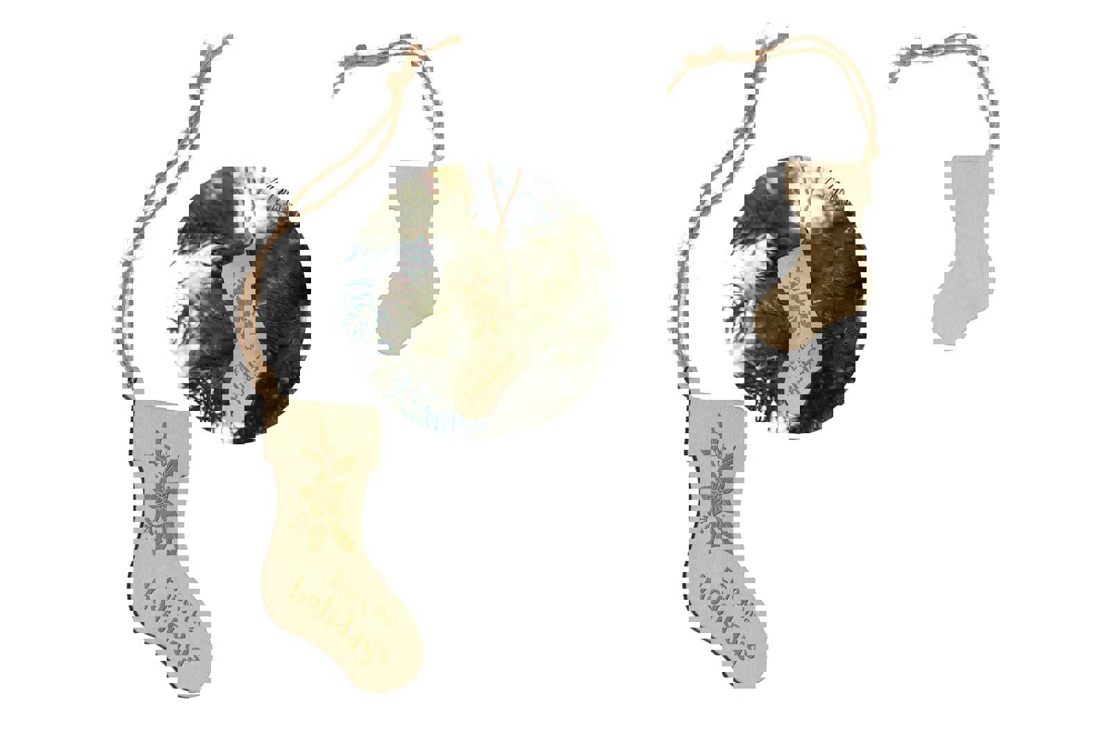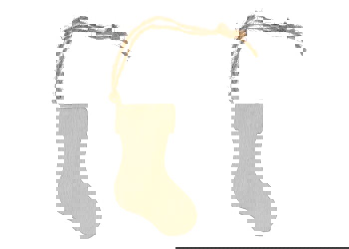 Célébrez la saison avec cette charmante décoration en bois en forme de bas. Sa forme classique et son large espace de marquage en font un objet parfait pour la personnalisation, la création d'un souvenir unique pour les fêtes de fin d'année et un cadeau bien pensé. Idéal pour décorer les arbres de Noël, les couronnes ou les expositions festives.