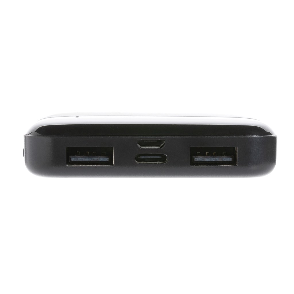 Batterie de secours 8000 mAh avec un chargeur induction 5W dont le boîtier est fabriqué en plastique ABS recyclé certifié RCS. RCS (Recycled Claim Standard) est une norme permettant de vérifier le contenu recyclé d'un produit tout au long de la chaîne d'approvisionnement. Contenu recyclé total : 22% sur la base du poids total de l'article. Lorsqu'elle est entièrement chargée, la powerbank vous fournit suffisamment d'énergie pour recharger votre téléphone portable jusqu'à quatre fois. Le powerbank contient une batterie au lithium-polymère de qualité A de 8 000 mAh. Les indicateurs de puissance indiquent le niveau d'énergie restant pour que vous sachiez toujours quand recharger. Entrée Type-C 5V/2A ; Entrée Micro USB 5V/2A ; Sortie sans fil 5W ; Sortie 2x USB 5V/2A ; Article et accessoires sans PVC. Comprend un câble de chargement en TPE recyclé sans PVC.