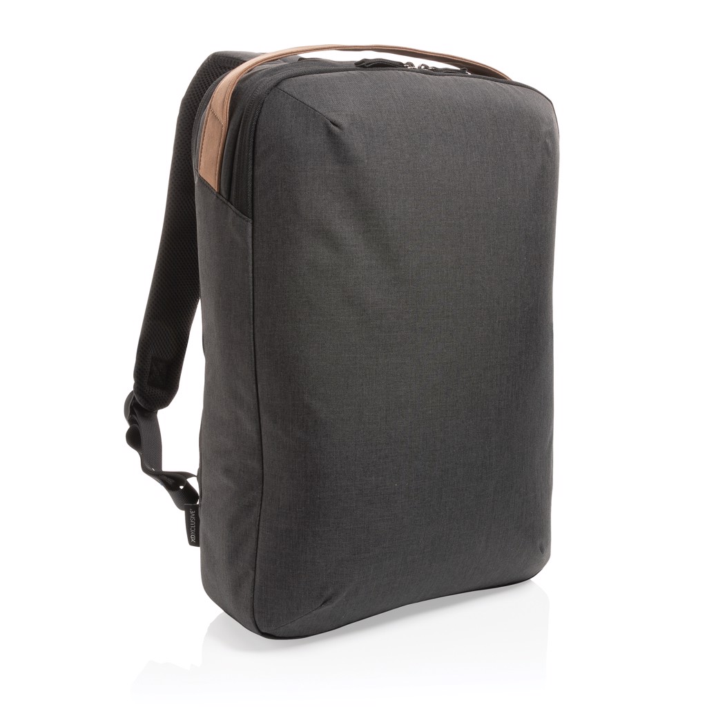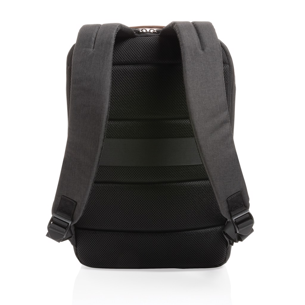 Sac à dos au design minimaliste et élégant. Profitez de voyager confortablement avec le sac à dos qui est équipé de bretelles rembourrées et panneau arrière. Le compartiment principal dispose d'un poche à ordinateur portable de 15,6” pouces et 2 poches en maille ouverte. Sur le dessus, vous trouverez une poignée PU. Les matériaux extérieurs sont fabriqués en polyester recyclé. Avec traceur AWARE™ qui prouve l'utilisation réelles des matériaux recyclés. Chaque sac a réutilisé 9,01 bouteilles de PET 0,5L. 2% de chaque produit IMPACT vendu sera reversé à Water.org.